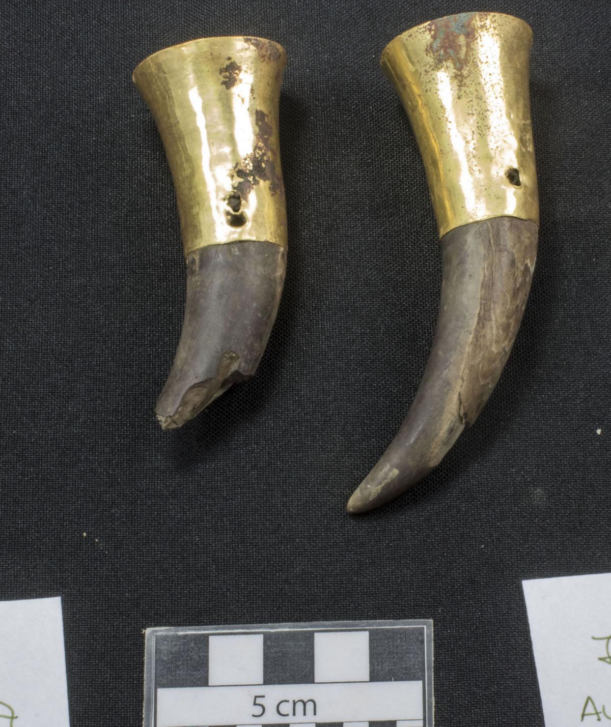 3567 - Conjunto de caninos de felino que integraban un collar ornamental, posiblemente asociado a símbolos de poder.