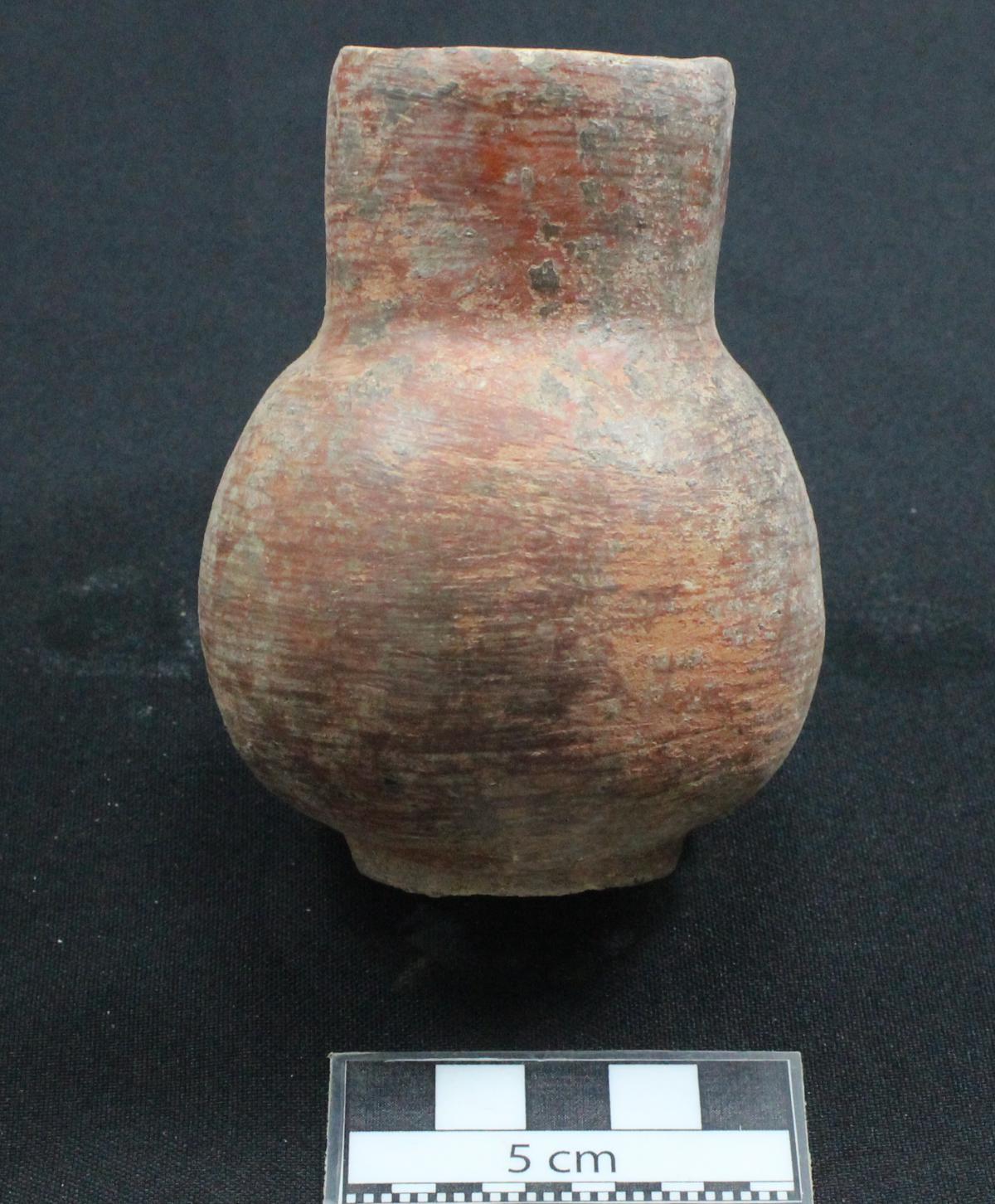 3561 - Jarra globular de cuello largo. Engobe de color rojo