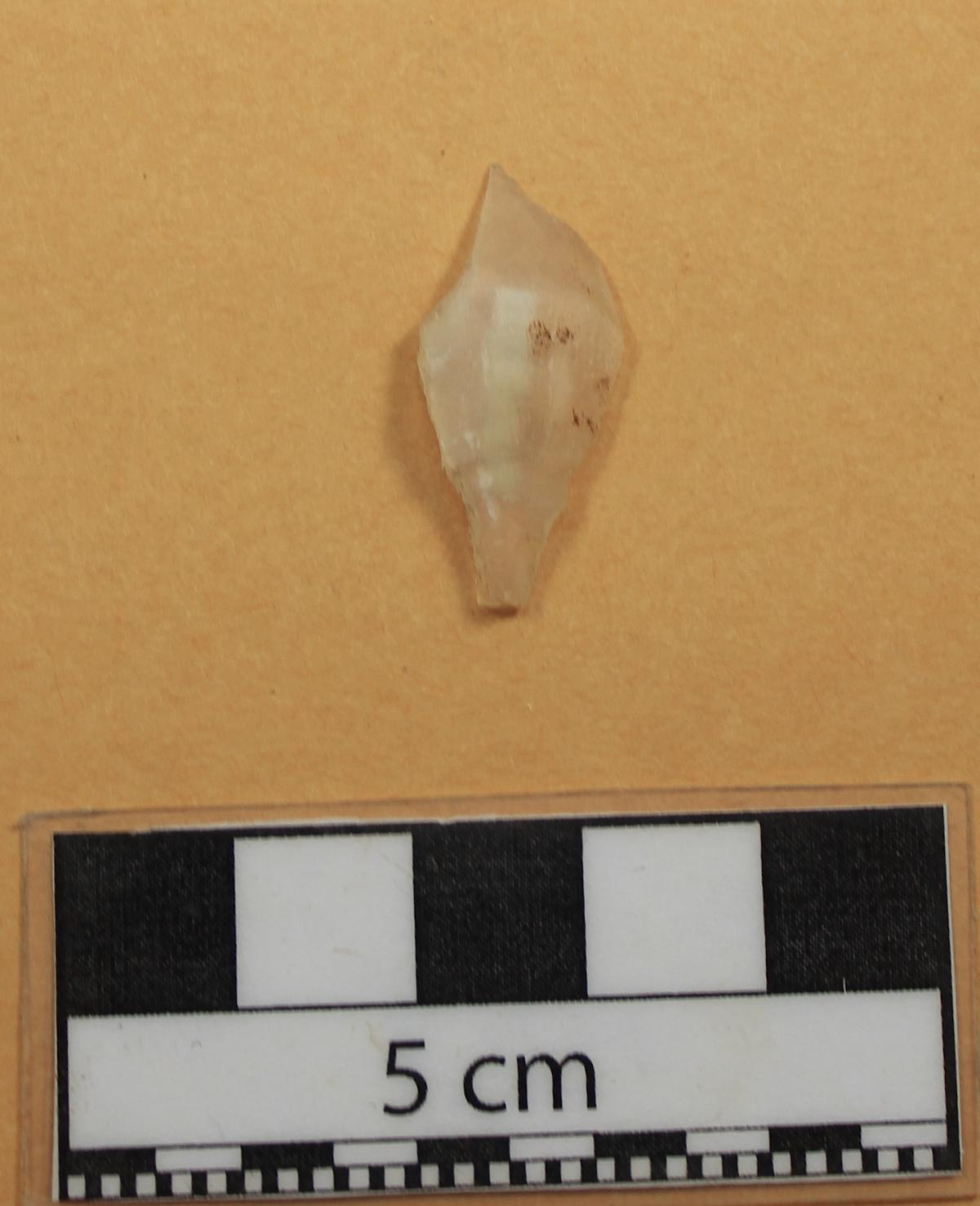 3571 - Diente perforado de tiburón. La perforación indica que pudo haber formado parte de un artefacto ornamental.