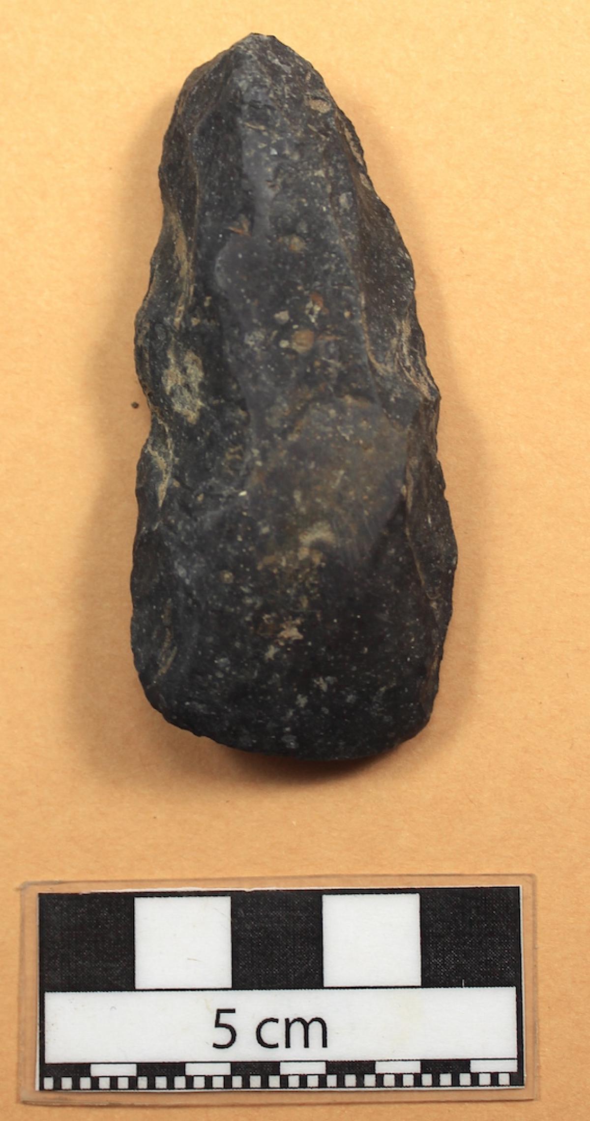 3571 - Diente perforado de tiburón. La perforación indica que pudo haber formado parte de un artefacto ornamental.