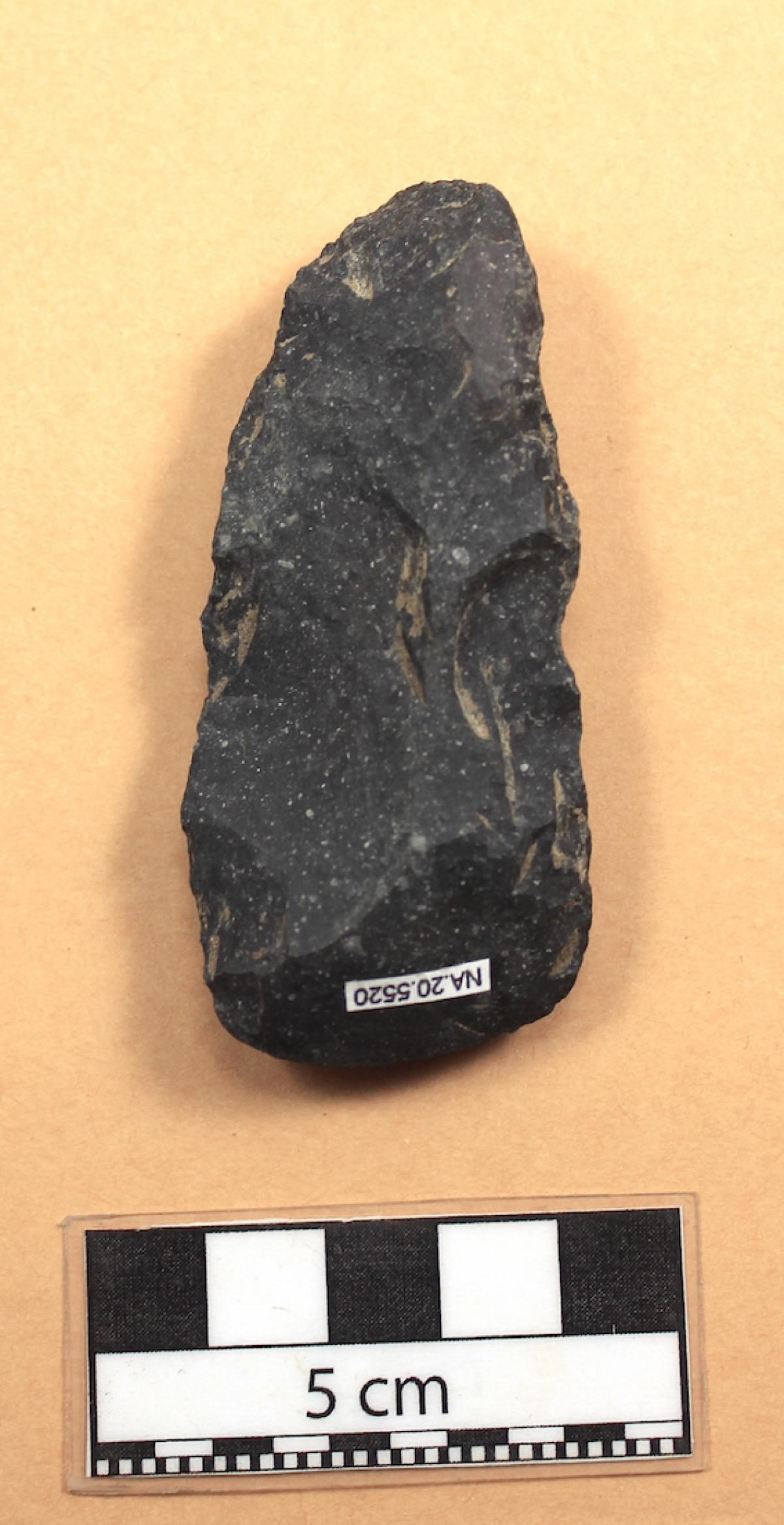 3570 - Diente perforado de tiburón. La perforación indica que pudo haber formado parte de un artefacto ornamental.