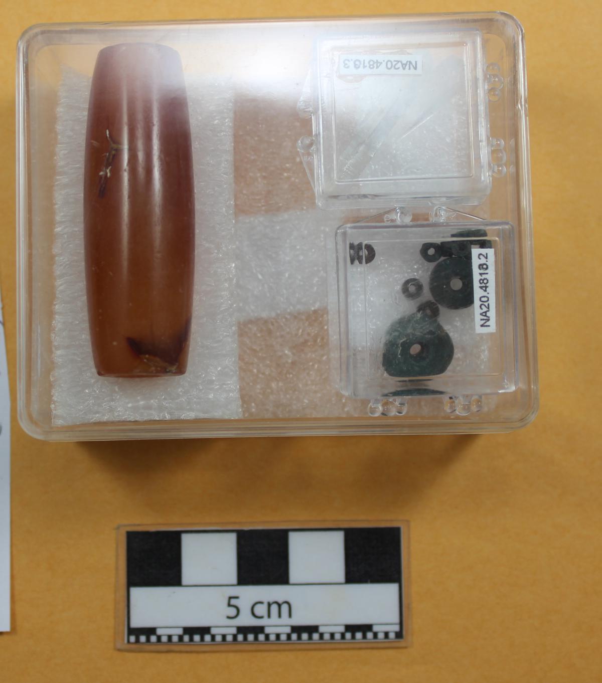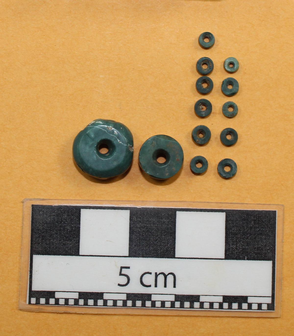 Conjunto de artefactos encontrados junto con las cuentas verdes.