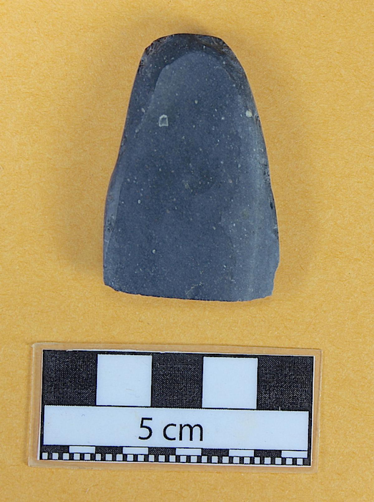 3571 - Diente perforado de tiburón. La perforación indica que pudo haber formado parte de un artefacto ornamental.