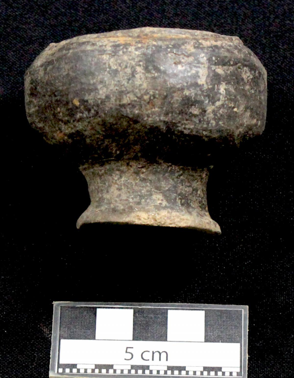 3568 - Pedestal bajo bicónico de engobe rojo y borde redondeado