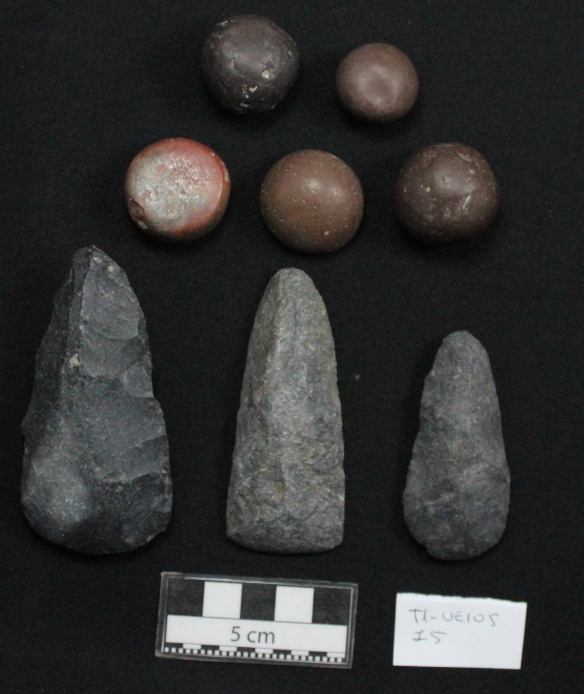 Otros artefactos de piedra asociados al mismo individuo.