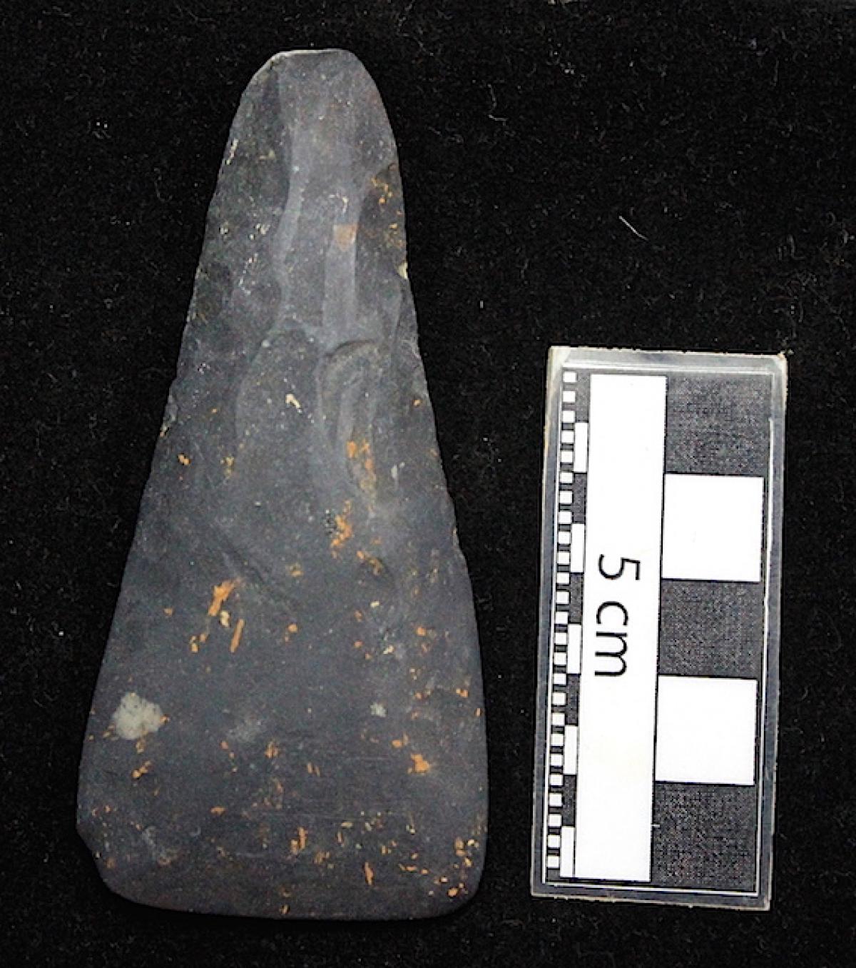 3571 - Diente perforado de tiburón. La perforación indica que pudo haber formado parte de un artefacto ornamental.