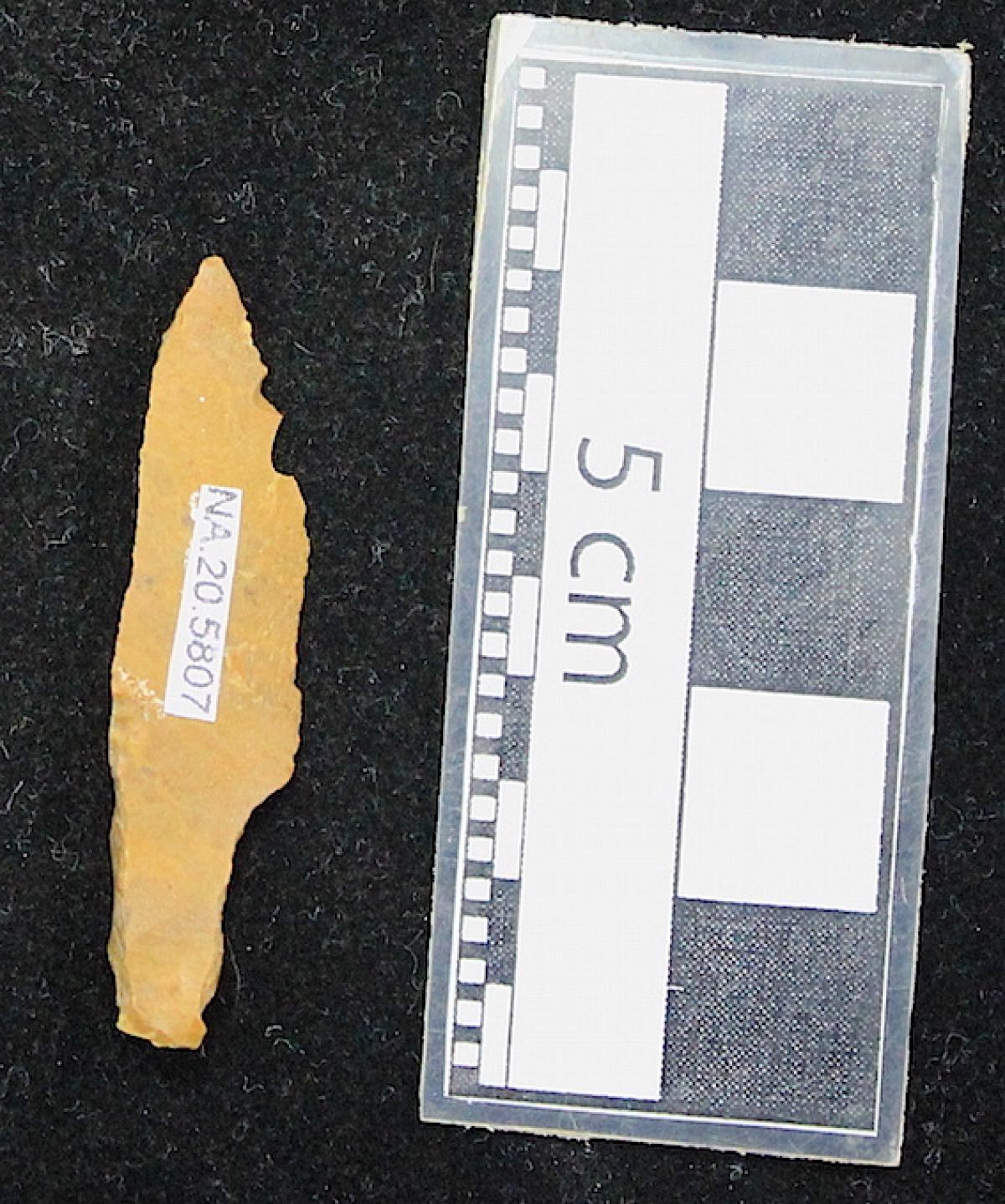 3571 - Diente perforado de tiburón. La perforación indica que pudo haber formado parte de un artefacto ornamental.