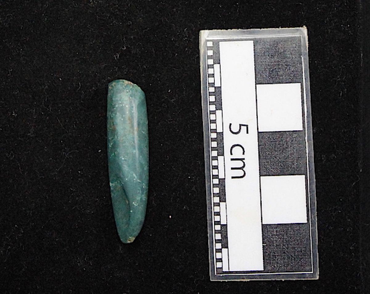 3571 - Diente perforado de tiburón. La perforación indica que pudo haber formado parte de un artefacto ornamental.