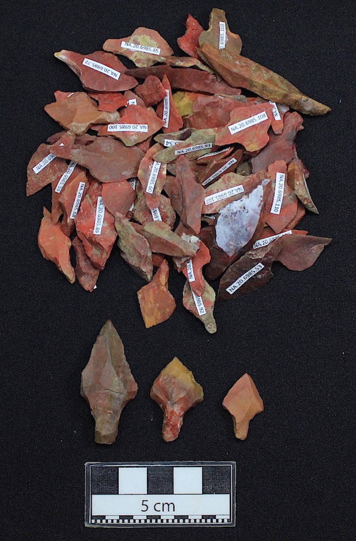 Puntas de proyectil de calcedonia roja.