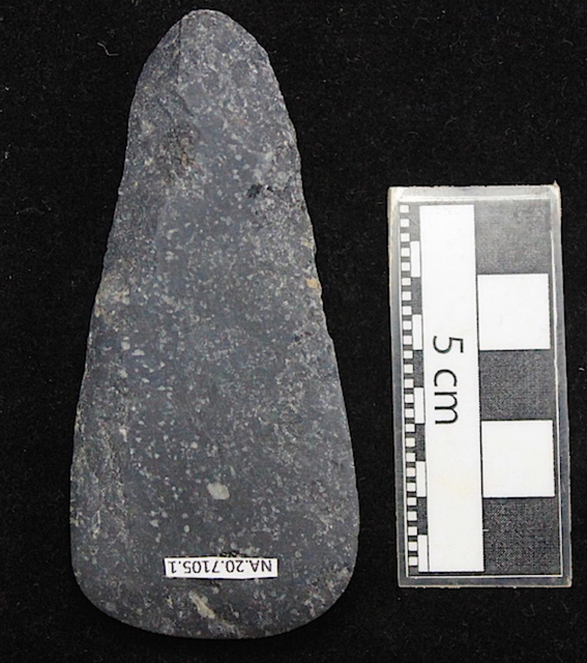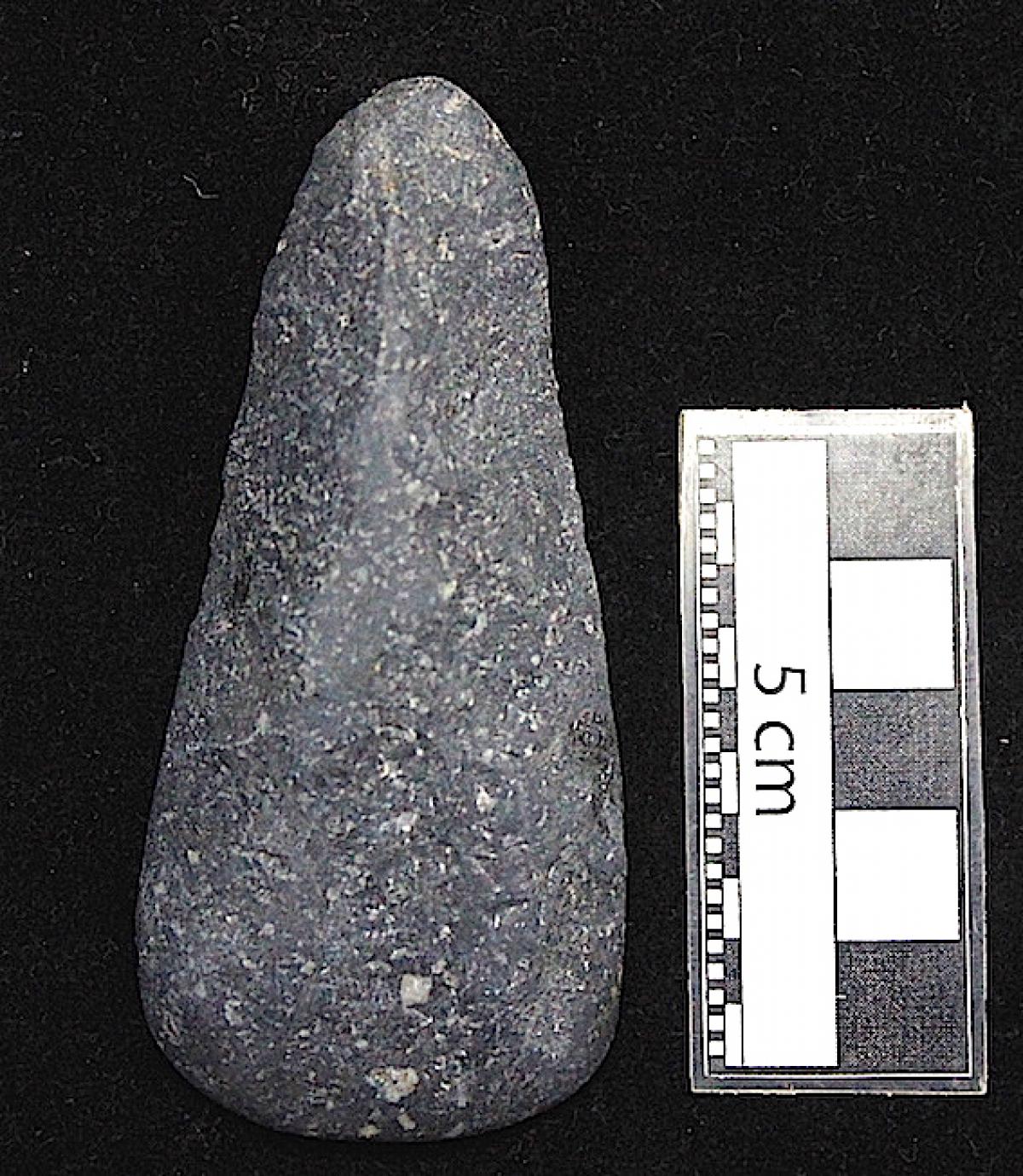 Hacha de piedra. Vista del lado anverso del artefacto.