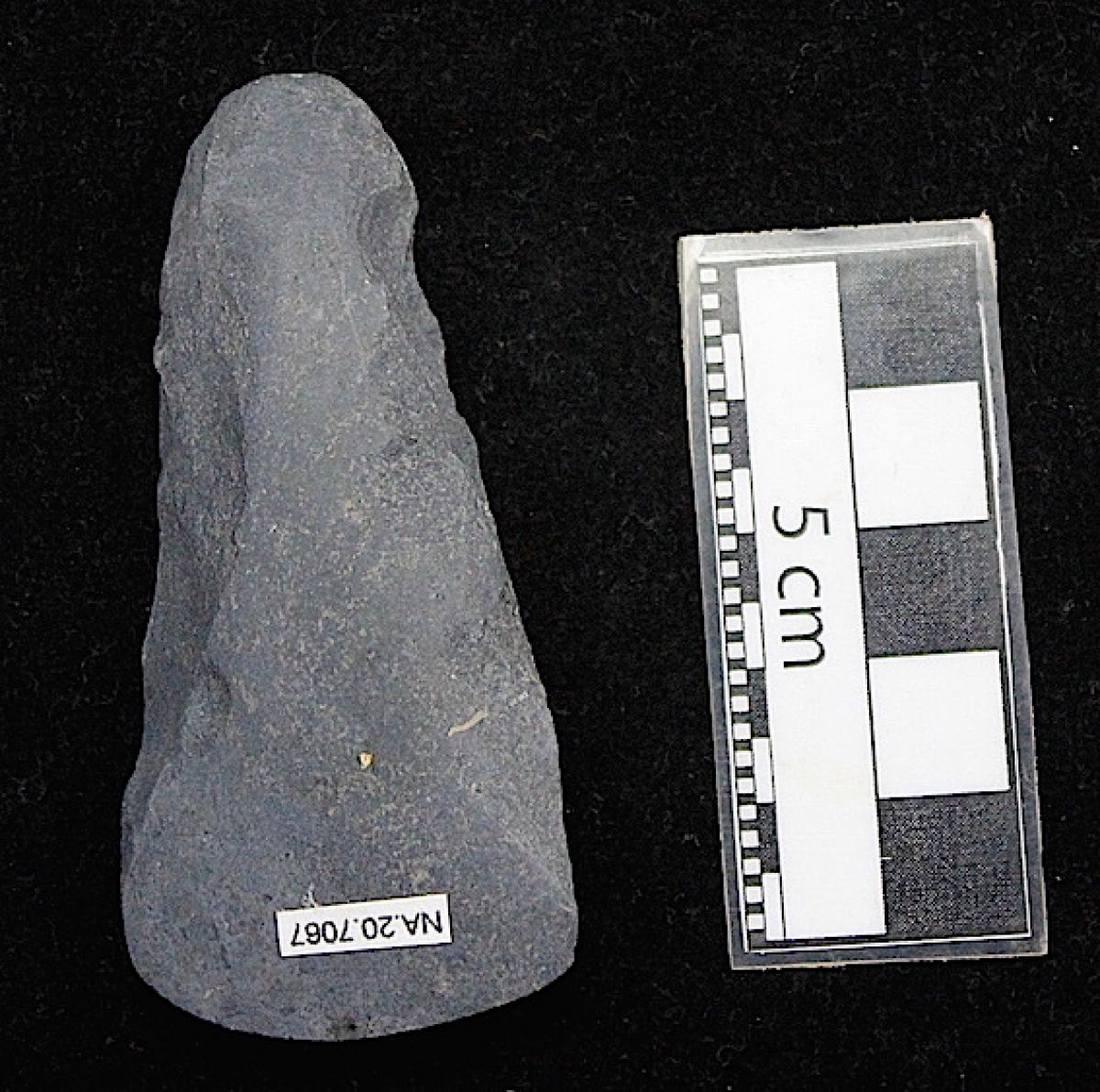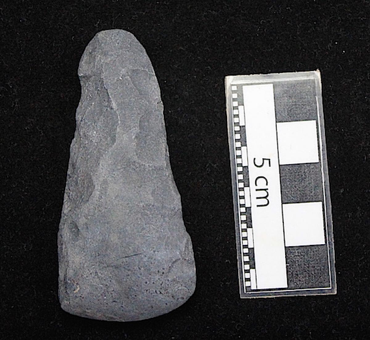 Hacha de piedra. Vista del anverso del artefacto.