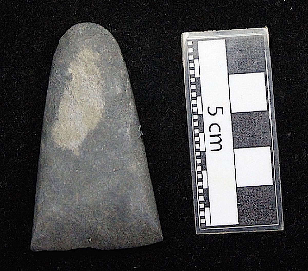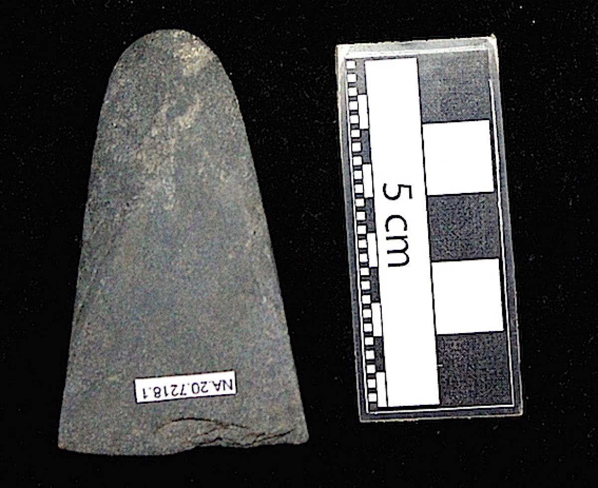 Hacha de piedra. Vista del reverso del artefacto.