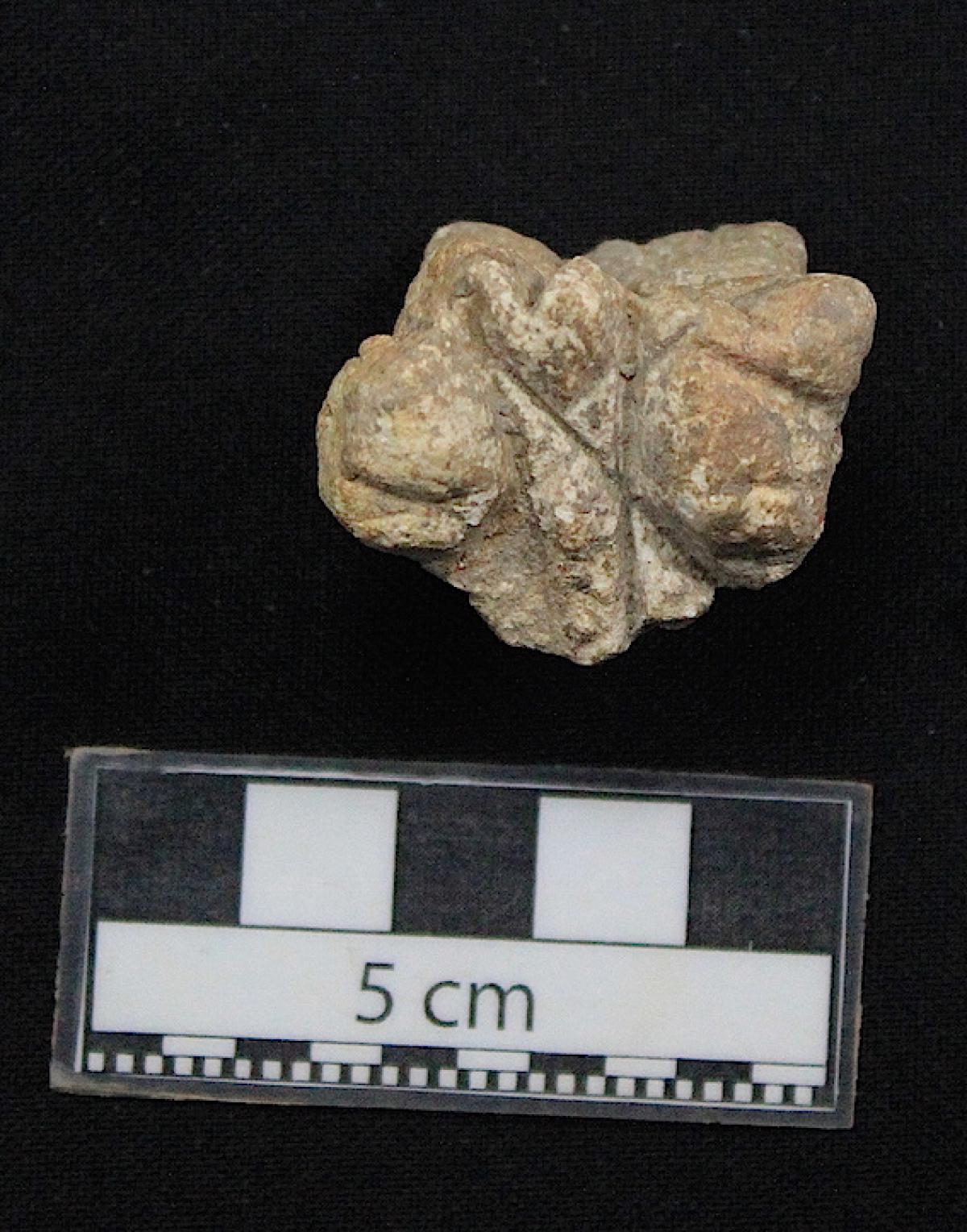 3653 - Efigie híbrida antropo-zoomorfa (humano-cangrejo) polícroma, sin base anular.