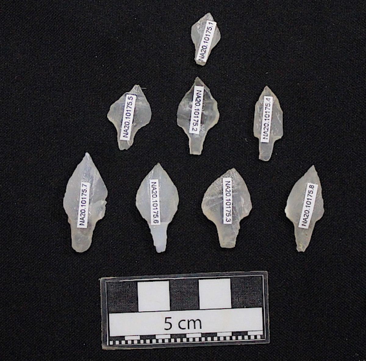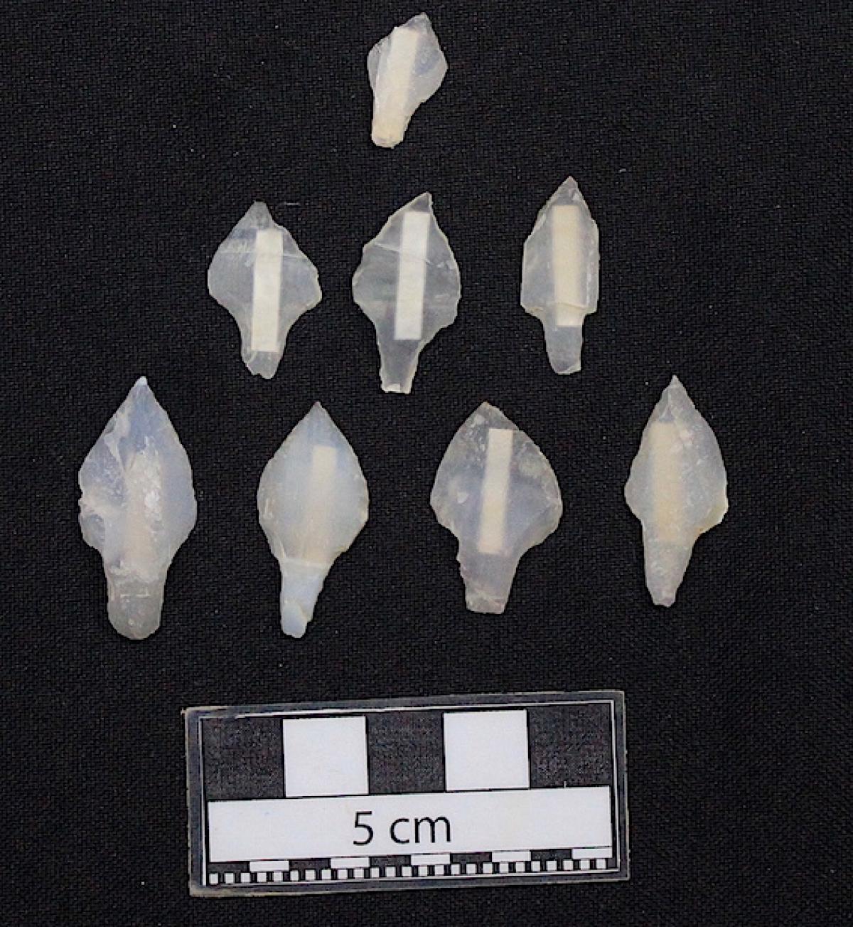 Grupo de puntas de proyectil. Vista de la superficie ventral de las puntas.
