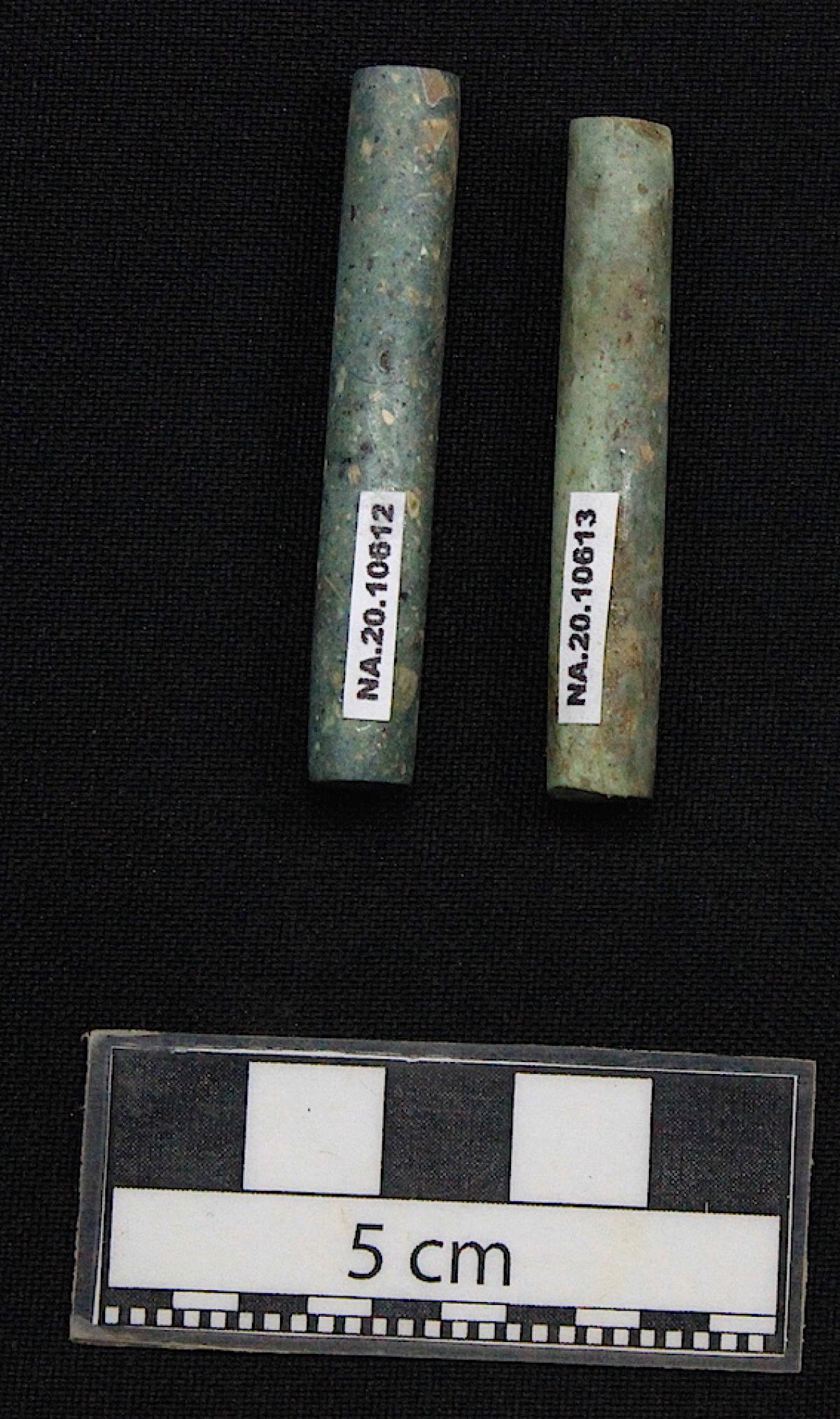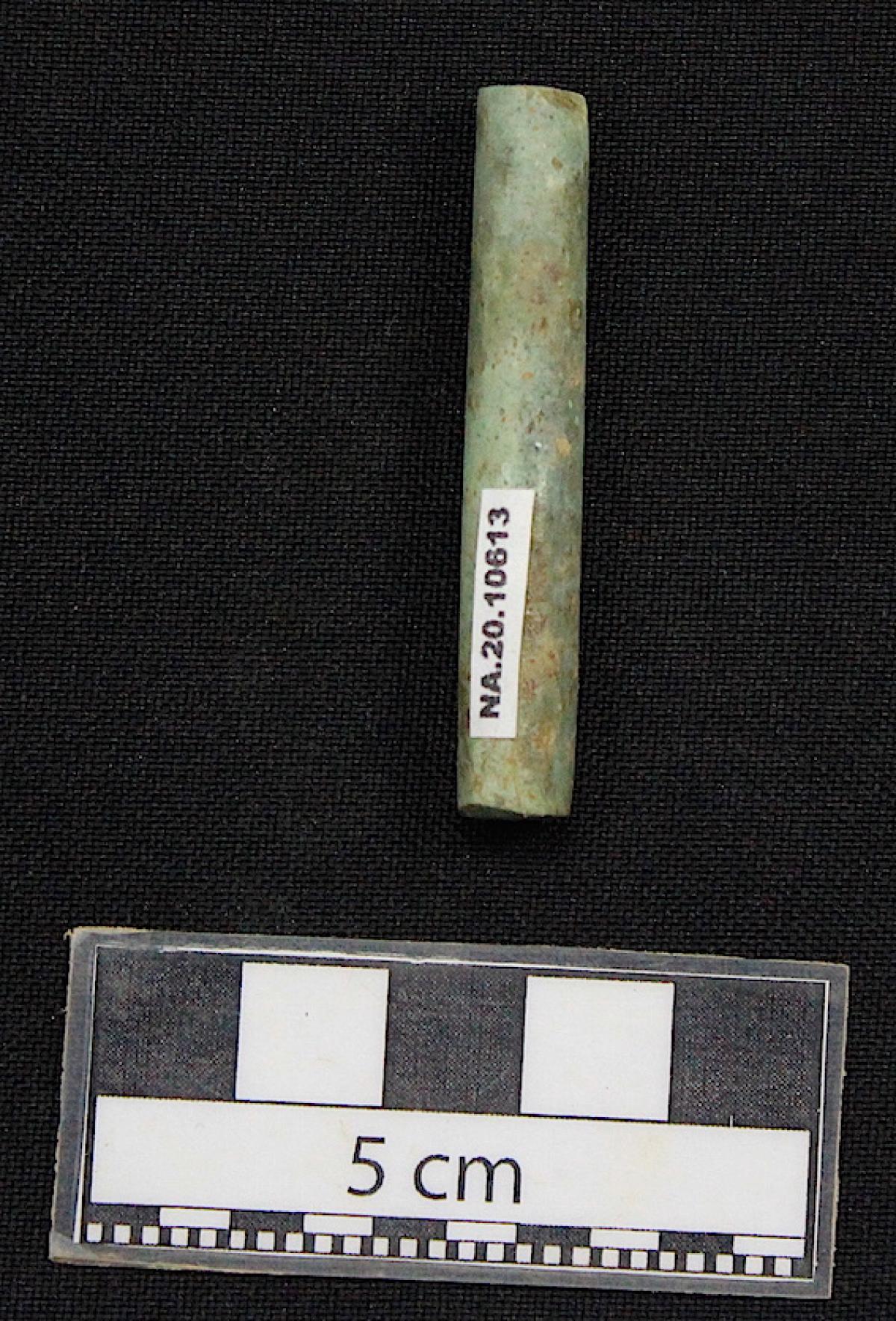 3553 - Cuenta de forma trapezoidal. Presenta dos perforaciones.