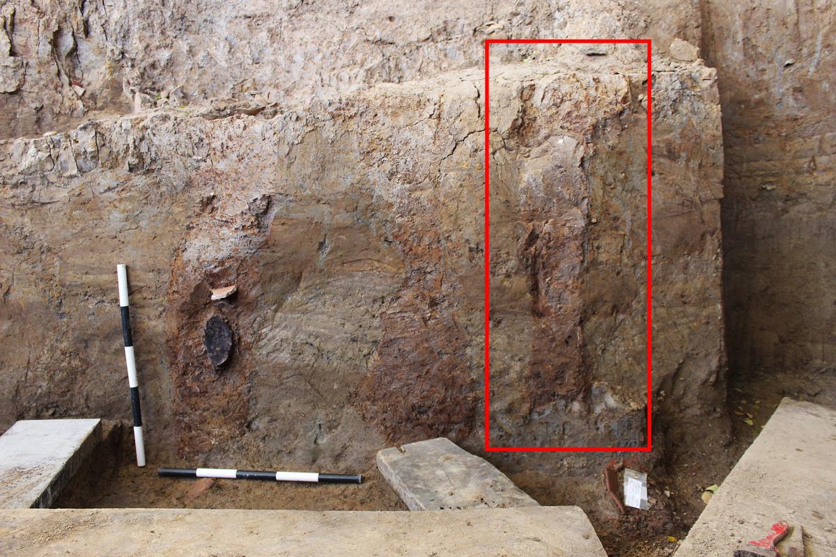 381 - T6-UE125 (a , (llamado en el año 2013, unidad UE167).Entierro de la tumba T6. Depósito de huesos humanos en posición primaria localizado a 3,48 m de profundidad. Es un entierro múltiple...