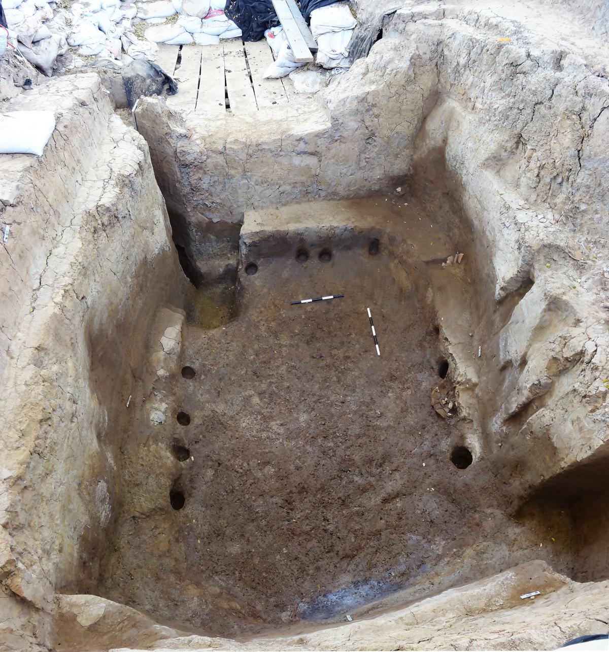 381 - T6-UE125 (a , (llamado en el año 2013, unidad UE167).Entierro de la tumba T6. Depósito de huesos humanos en posición primaria localizado a 3,48 m de profundidad. Es un entierro múltiple...
