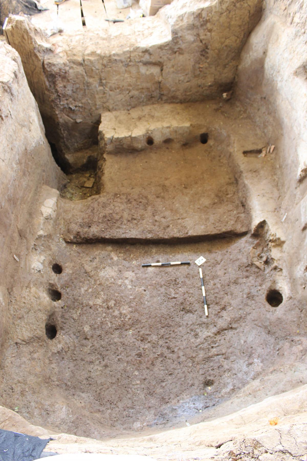 381 - T6-UE125 (a , (llamado en el año 2013, unidad UE167).Entierro de la tumba T6. Depósito de huesos humanos en posición primaria localizado a 3,48 m de profundidad. Es un entierro múltiple...