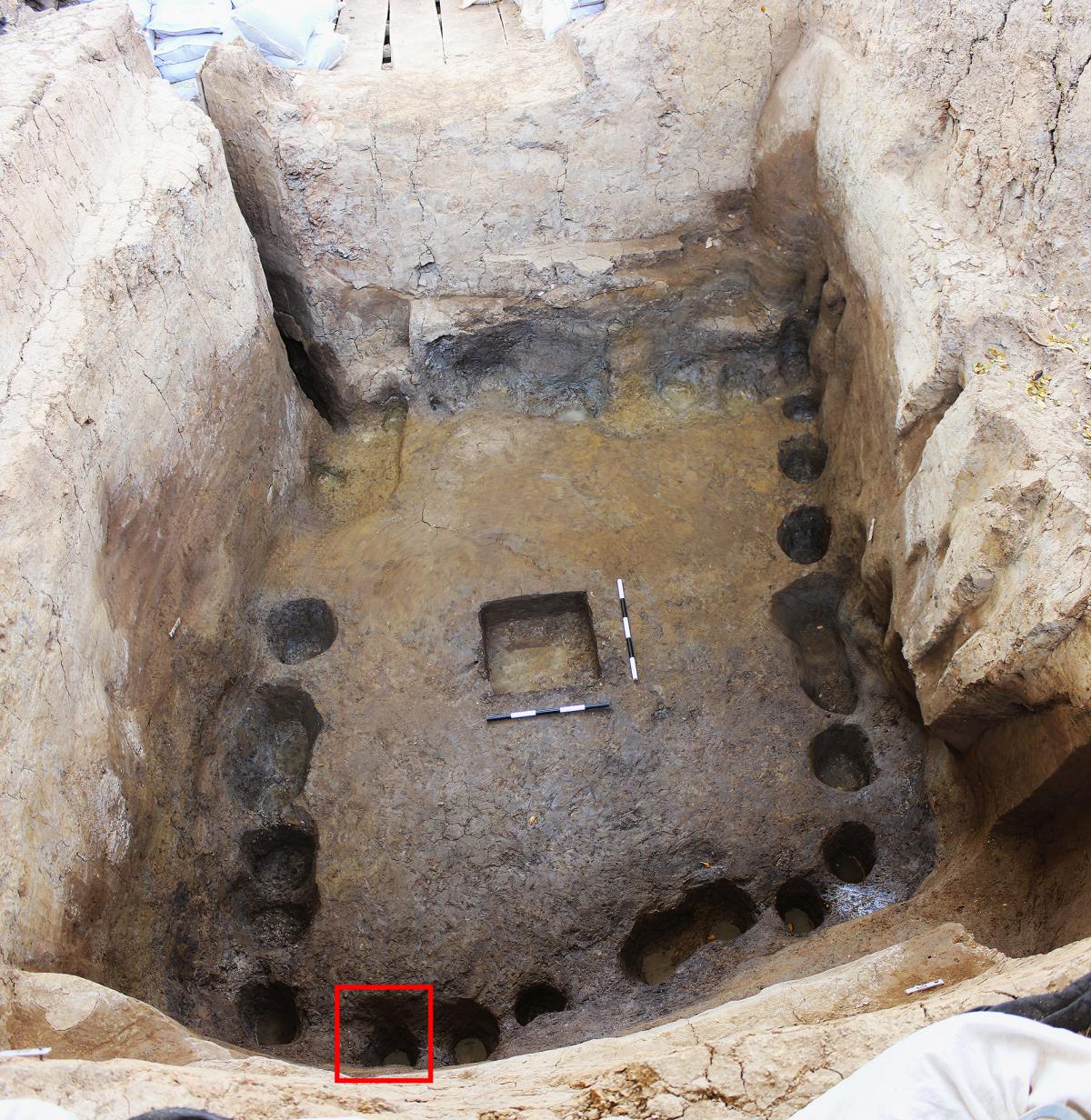 381 - T6-UE125 (a , (llamado en el año 2013, unidad UE167).Entierro de la tumba T6. Depósito de huesos humanos en posición primaria localizado a 3,48 m de profundidad. Es un entierro múltiple...