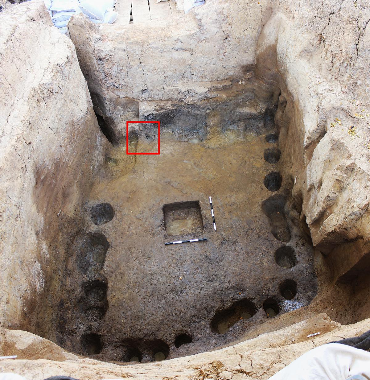 381 - T6-UE125 (a , (llamado en el año 2013, unidad UE167).Entierro de la tumba T6. Depósito de huesos humanos en posición primaria localizado a 3,48 m de profundidad. Es un entierro múltiple...