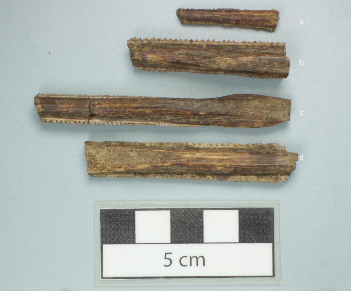 3564 - Arpones y fragmentos de arpones elaborados a partir de dentículos de pez sierra.