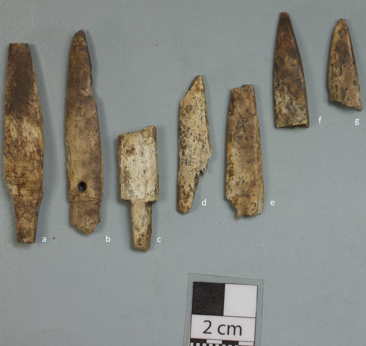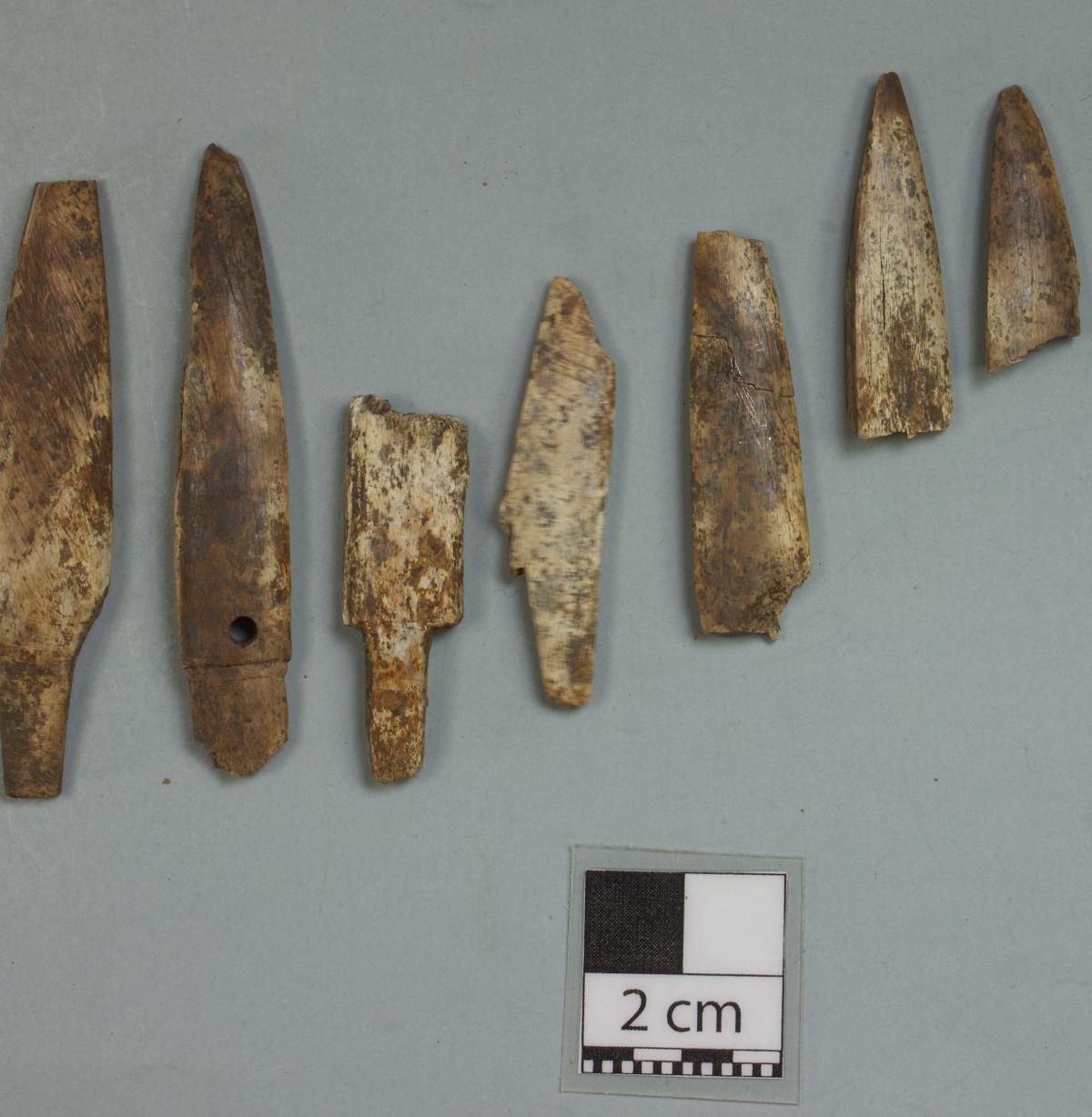 Puntas y fragmento de puntas elaboradas a partir de dientes de pez sierra.