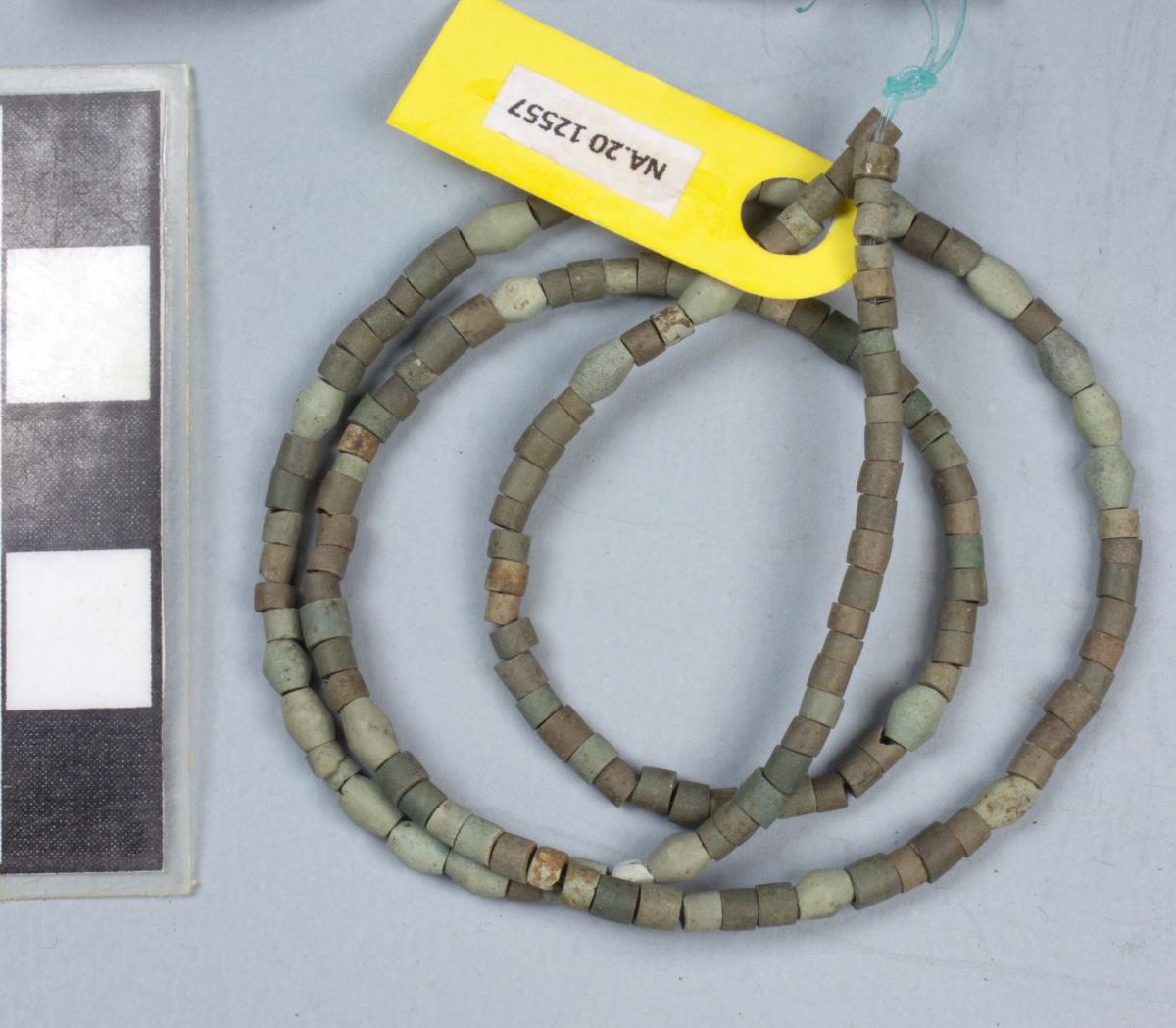 3553 - Cuenta de forma trapezoidal. Presenta dos perforaciones.