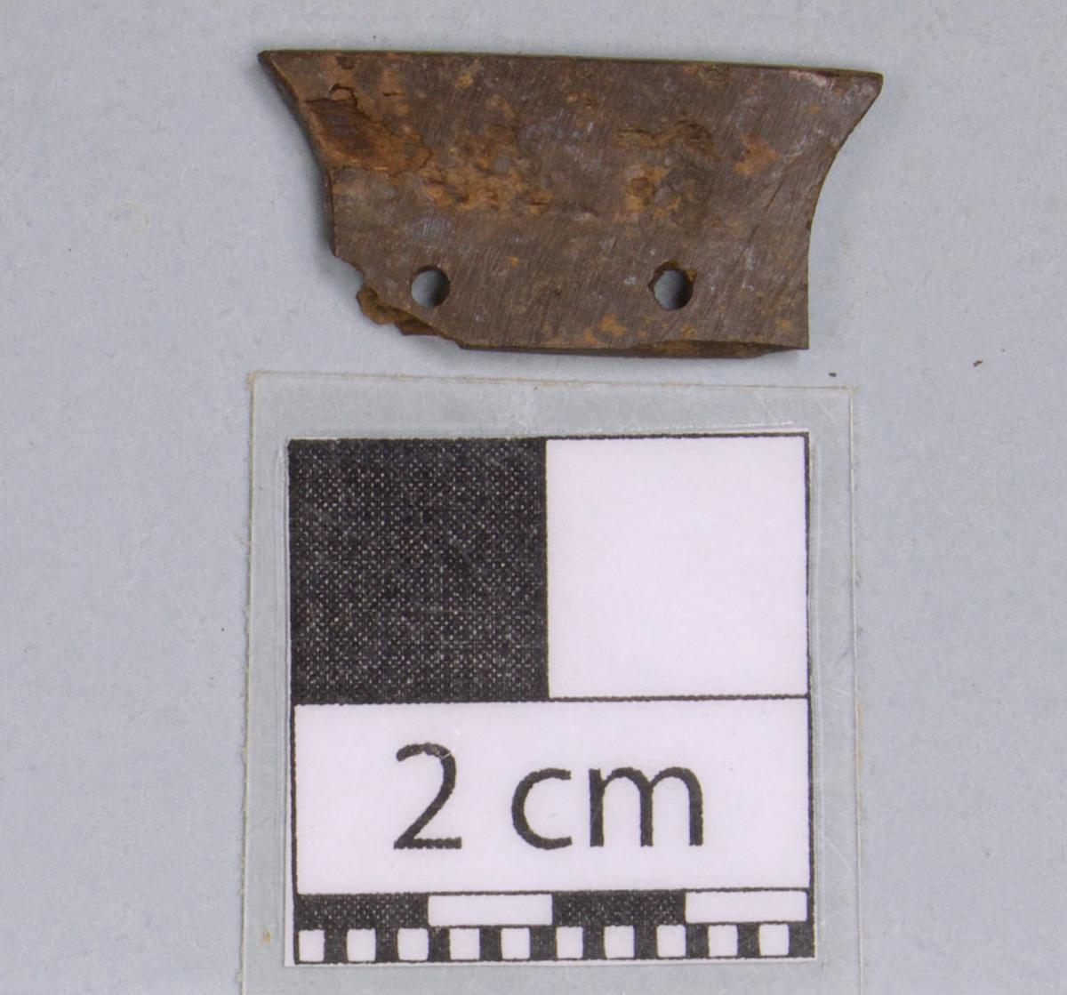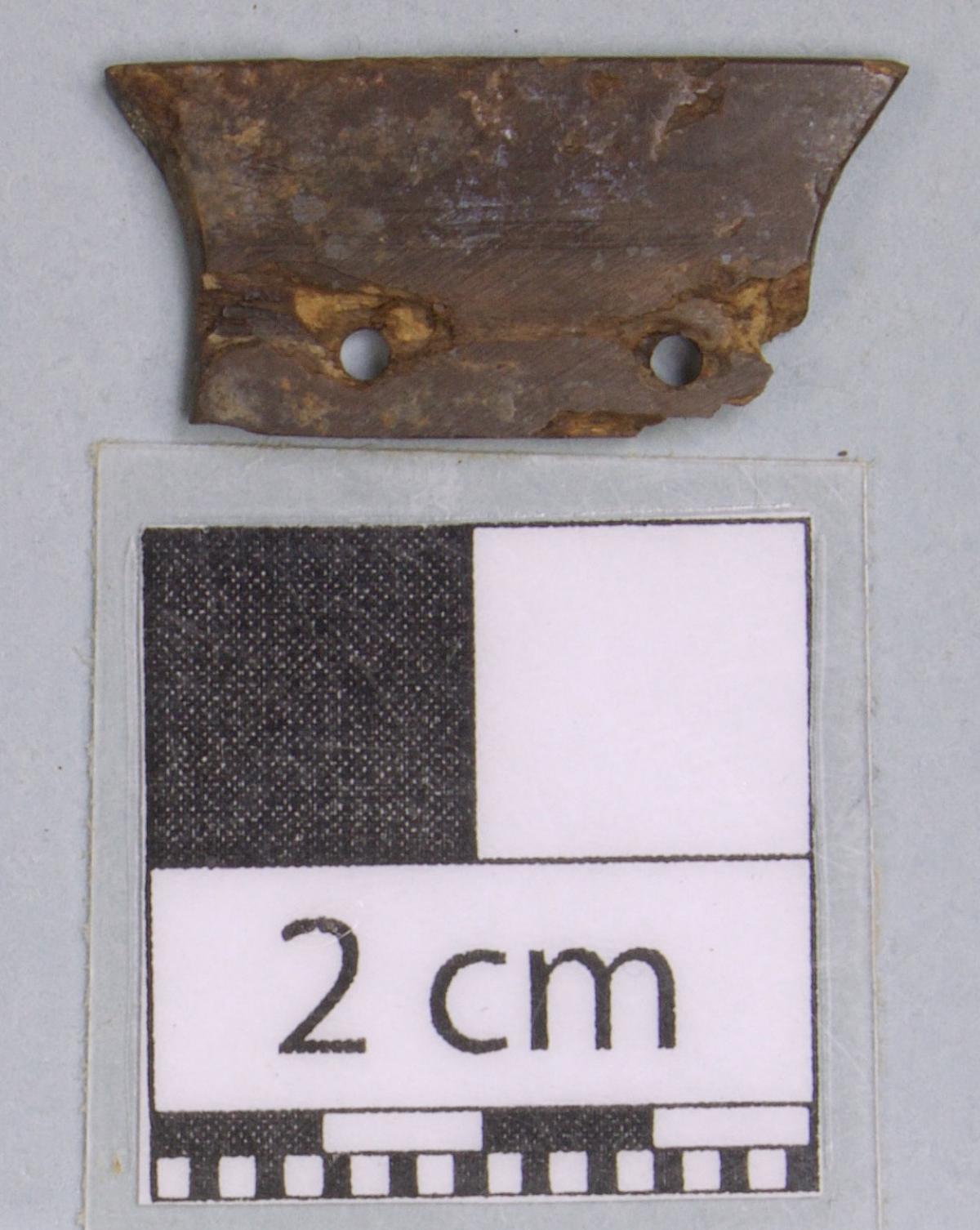 3553 - Cuenta de forma trapezoidal. Presenta dos perforaciones.