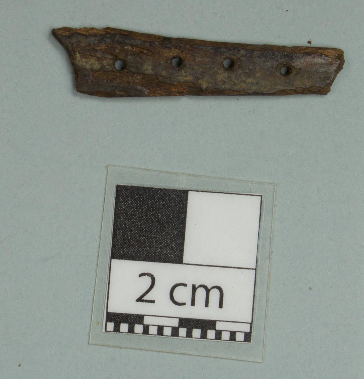 3553 - Cuenta de forma trapezoidal. Presenta dos perforaciones.