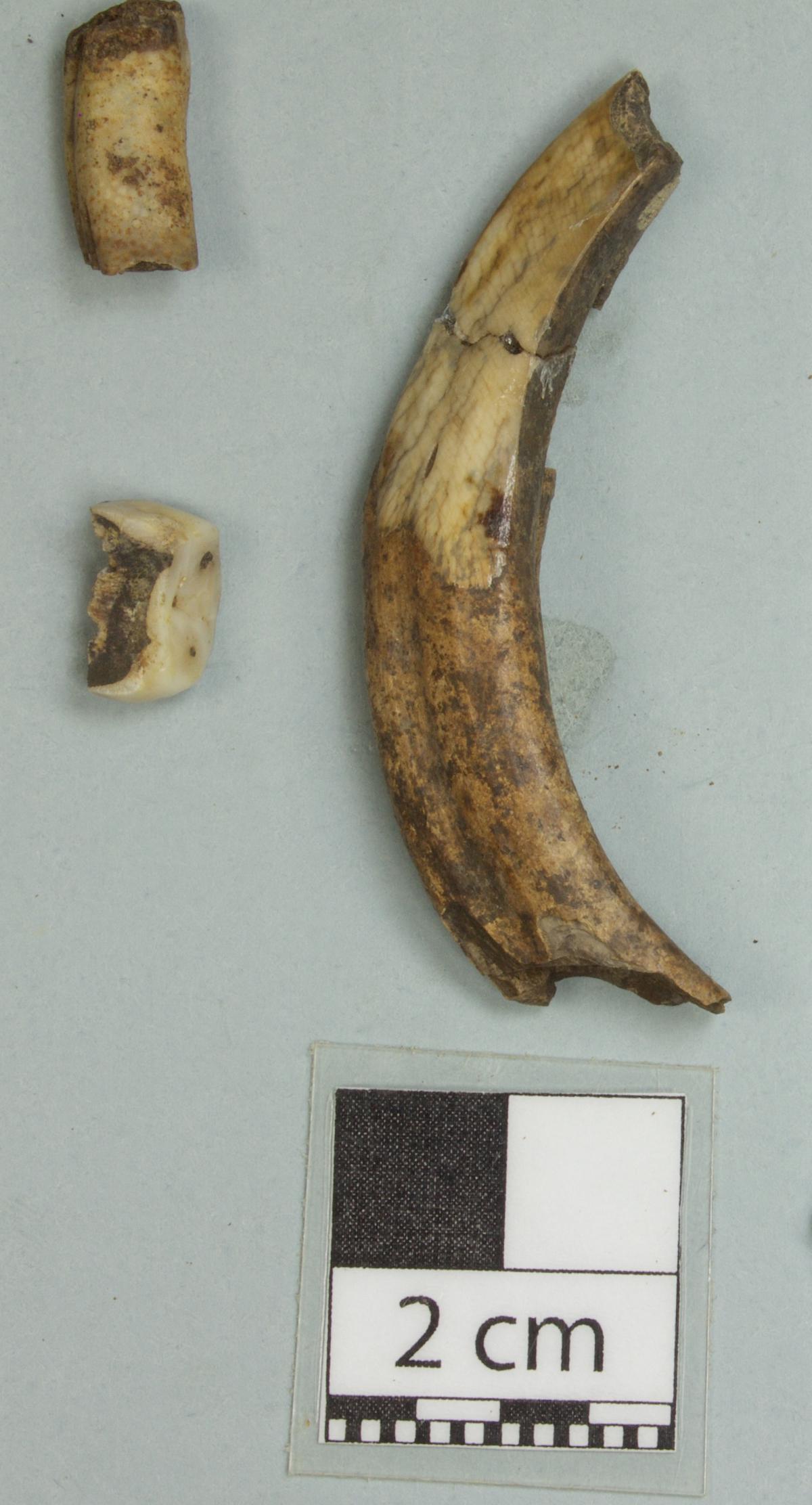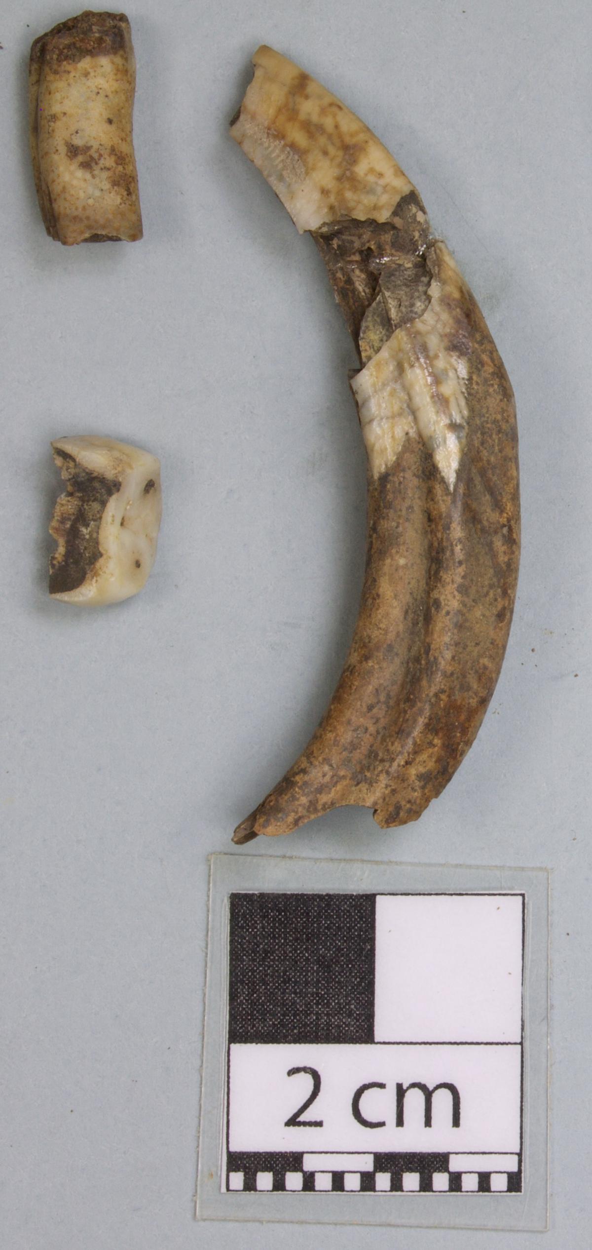 3592 - Canino de perro perforado. Aunque se encuentra fragmentado, se conservan sus partes.