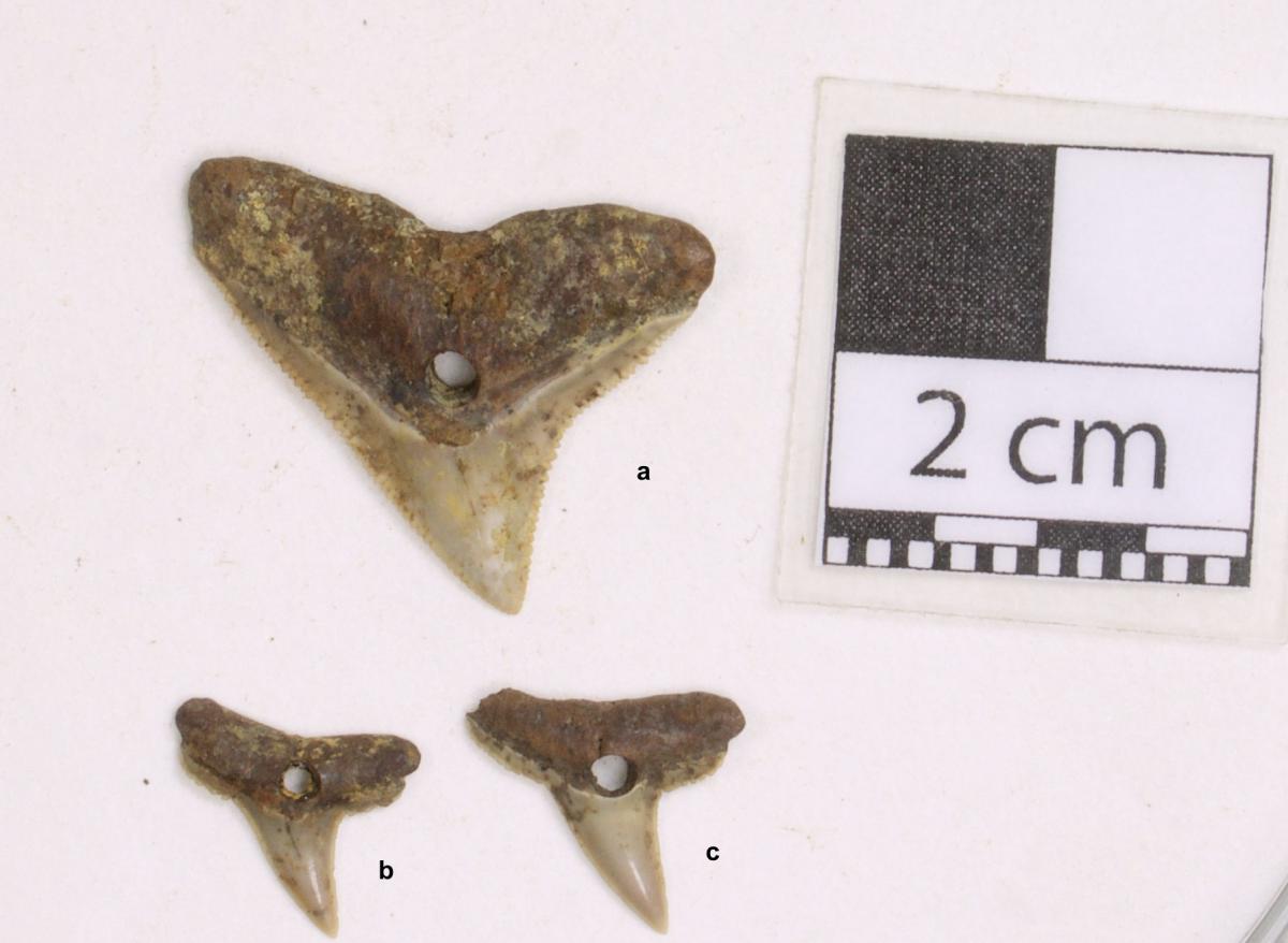 Dientes de tiburón perforados.