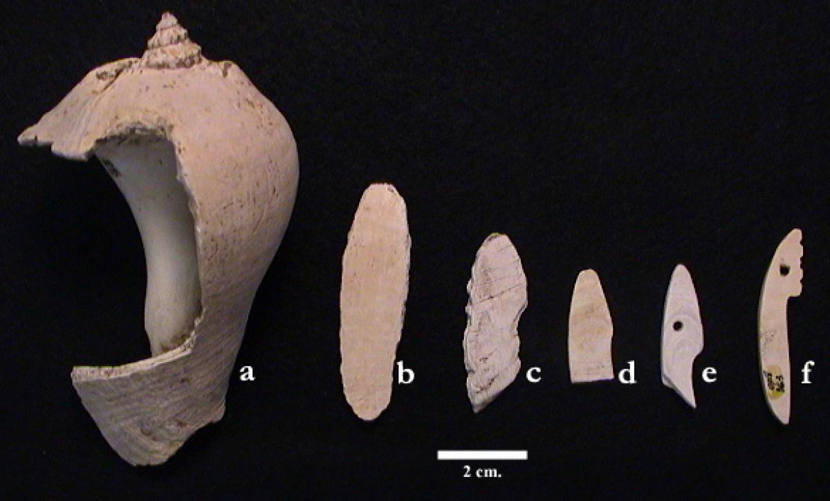 Secuencia de manufactura de cuentas de tipo pluma, elaboradas con conchas de la especie Strombus galeatus.