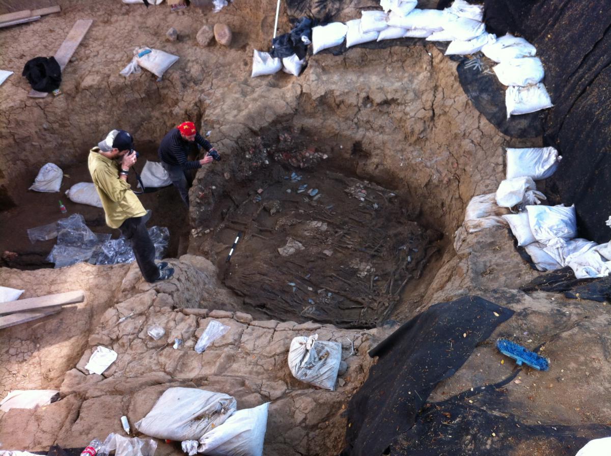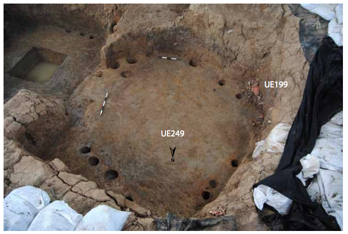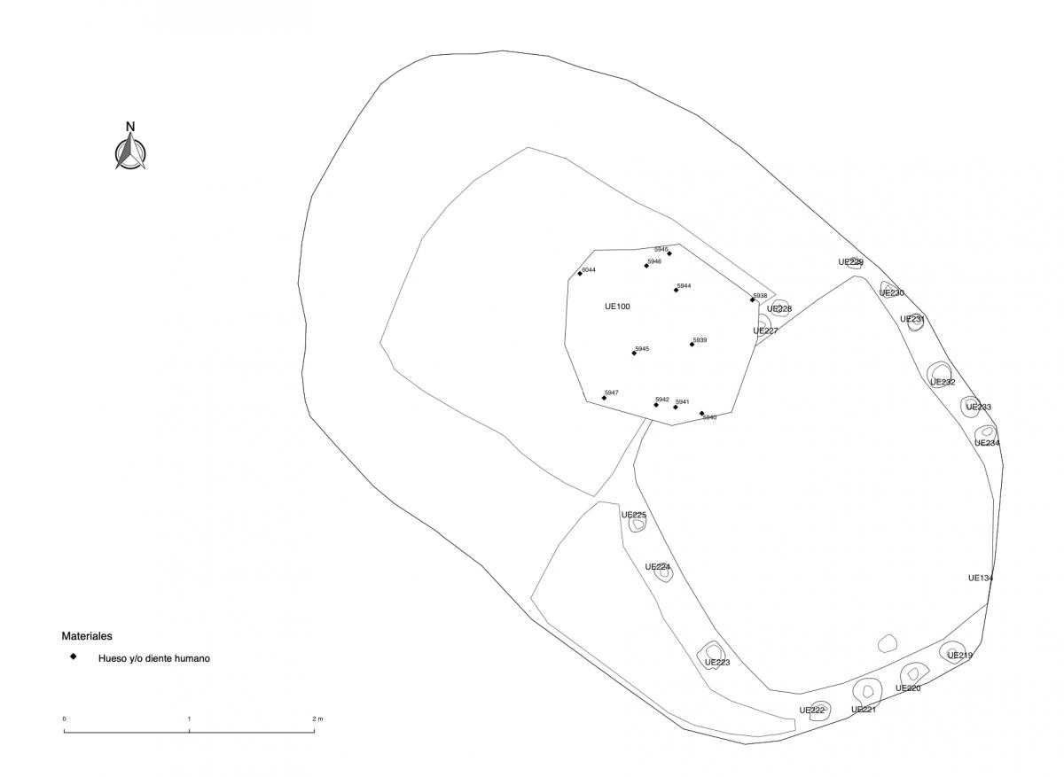 381 - T6-UE125 (a , (llamado en el año 2013, unidad UE167).Entierro de la tumba T6. Depósito de huesos humanos en posición primaria localizado a 3,48 m de profundidad. Es un entierro múltiple...