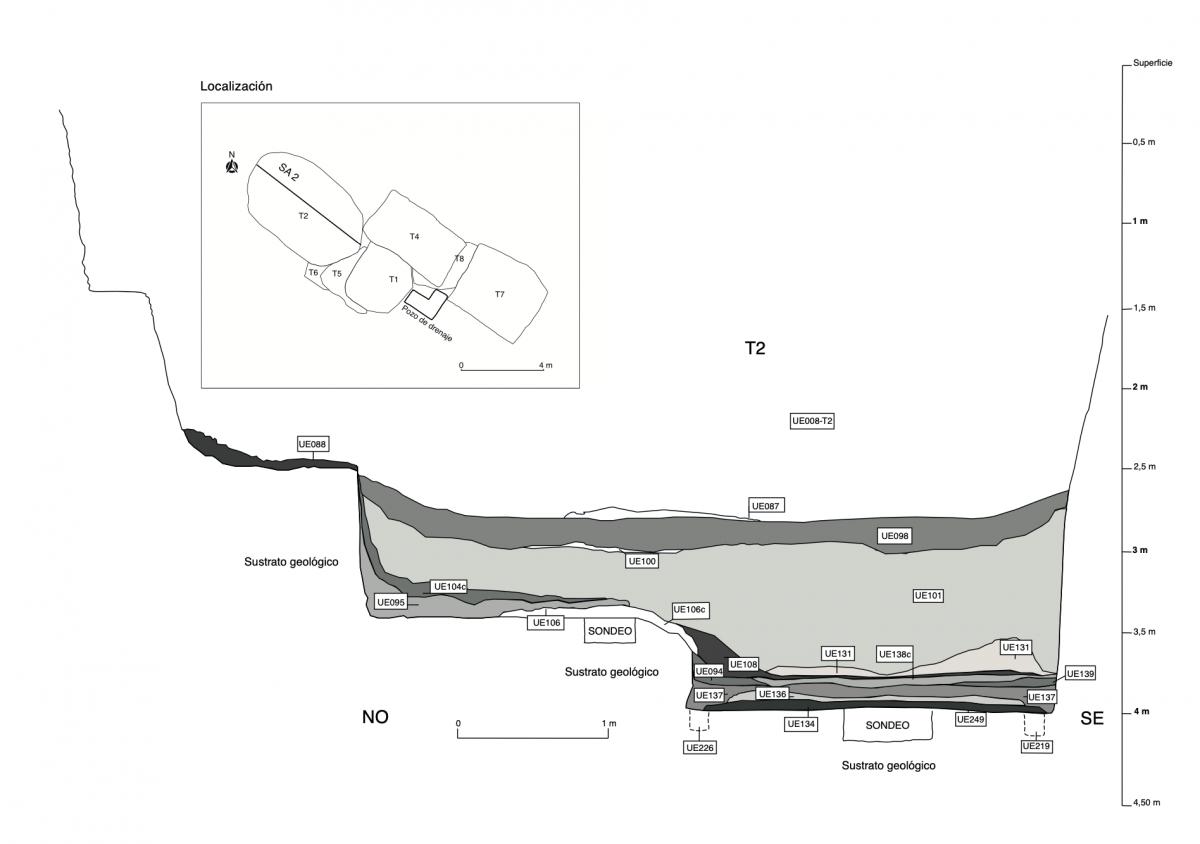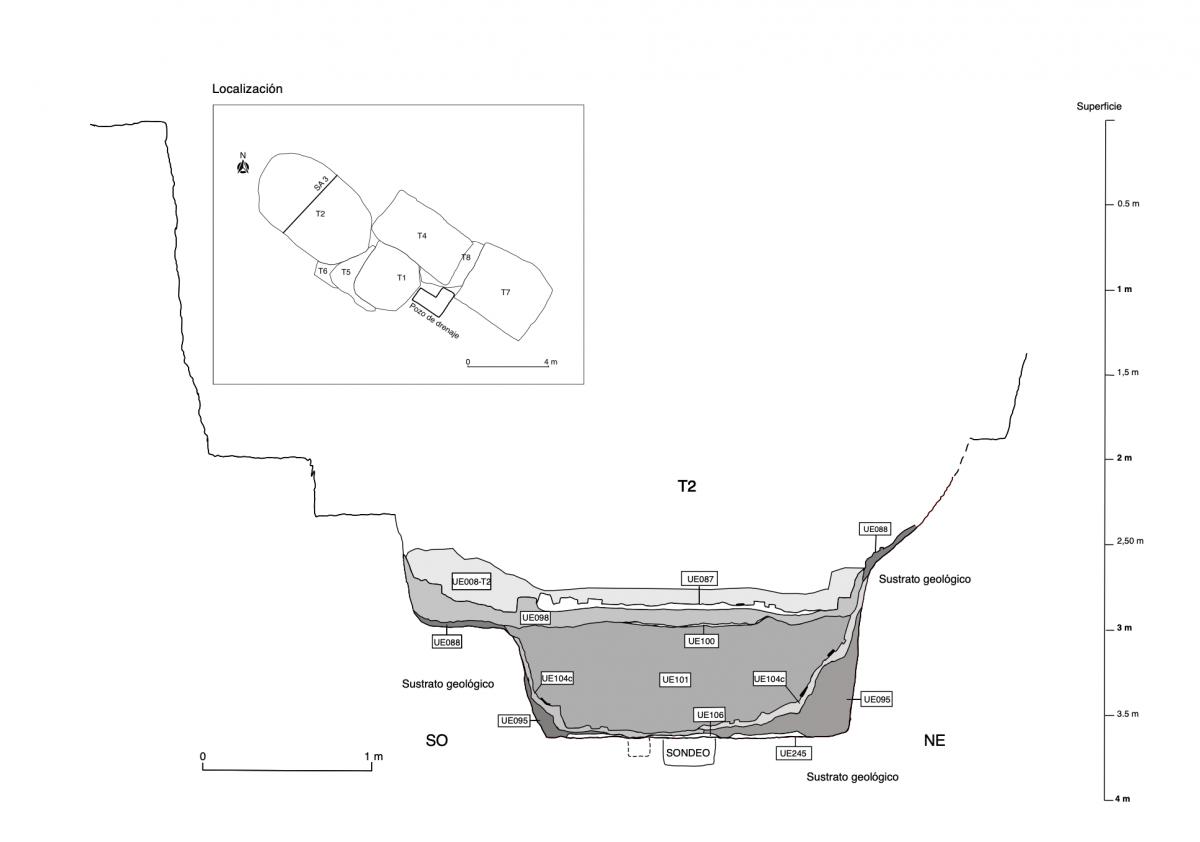Fosa de enterramiento de la tumba T2. Corta el nivel natural. Contiene a las unidad estratigráficas UE160, UE161, UE164, UE182 y UE183. Es cortada por las unidades UE202, UE203, UE204, UE205, UE206, UE207, UE208, UE209, UE210, UE211, UE212, UE213, UE214, UE215, UE216, UE217 y UE218