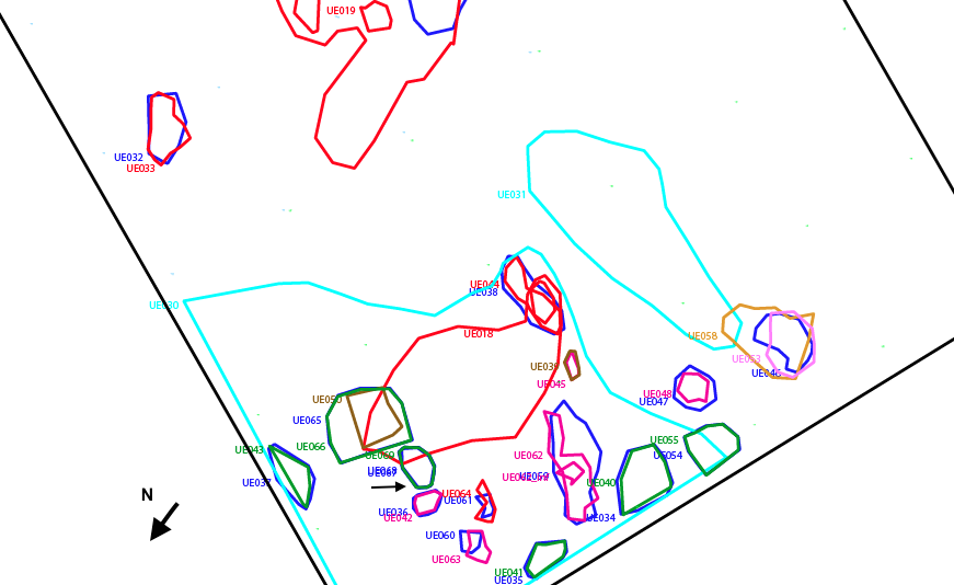 -> Hallado en la UE#: Objetos clasificados según los UE# del GE