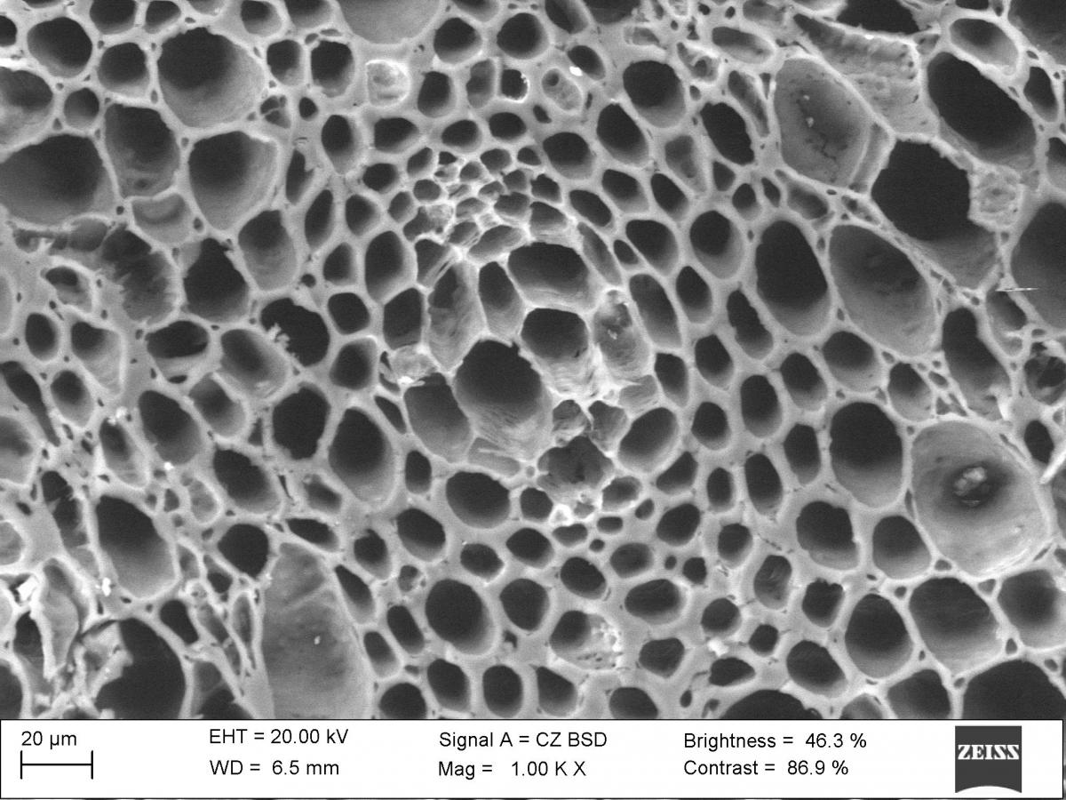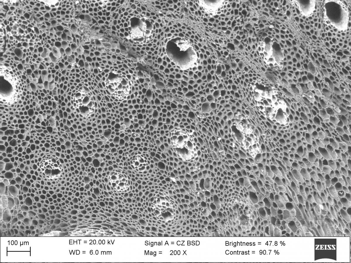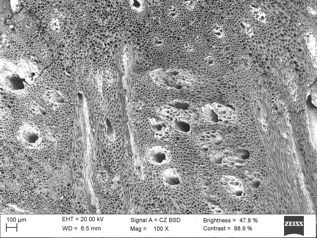 Plano transversal de monocotiledónea. Detalle de haces vasculares.
