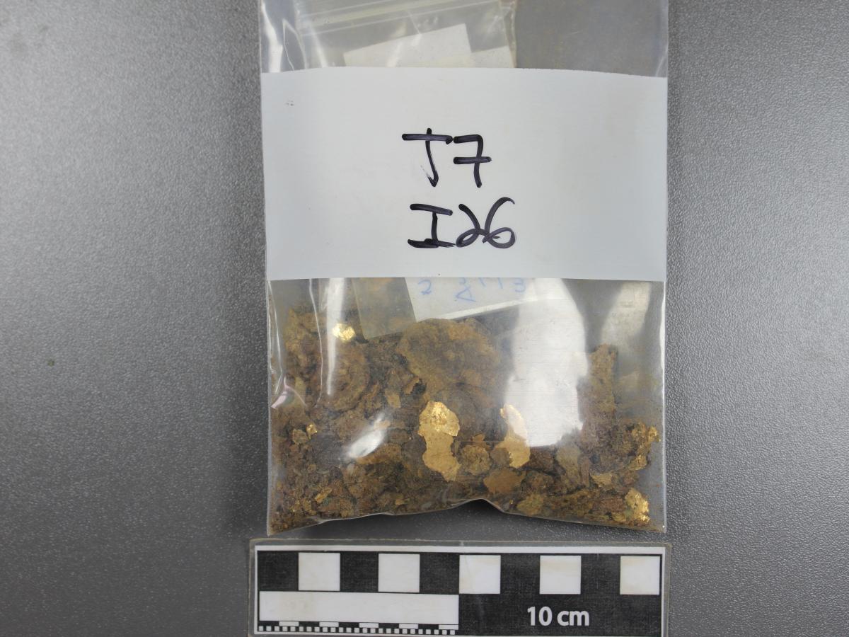 0,2%(Cu), 5,5%(Ag), 94,3%(Au) - 0,2%(Cu), 5,6%(Ag), 94,2%(Au) y madera..(1)