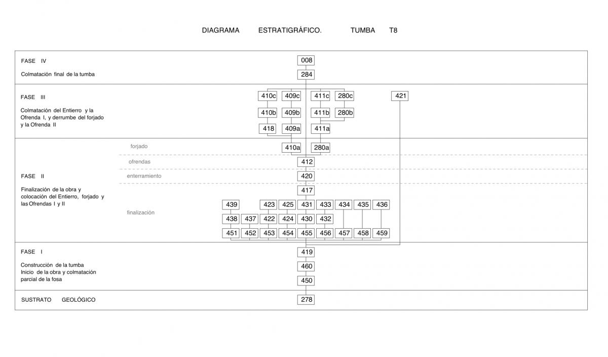 "Diagrama Estratigráfico", DE, de la tumba T8.