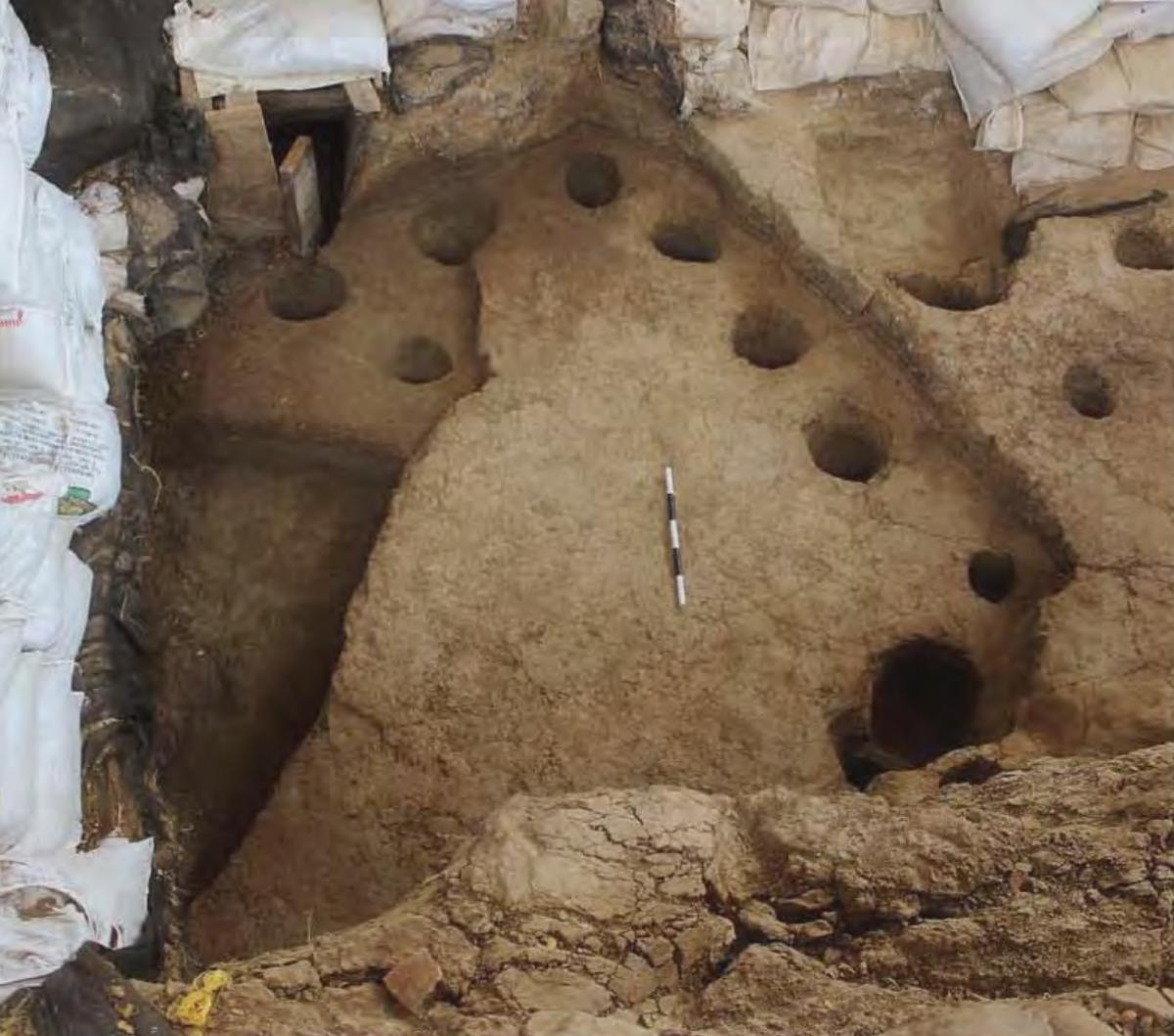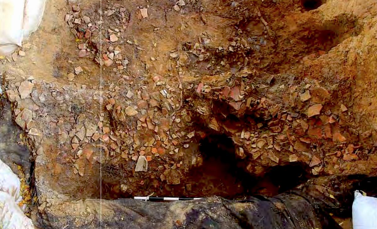 381 - T6-UE125 (a , (llamado en el año 2013, unidad UE167).Entierro de la tumba T6. Depósito de huesos humanos en posición primaria localizado a 3,48 m de profundidad. Es un entierro múltiple...