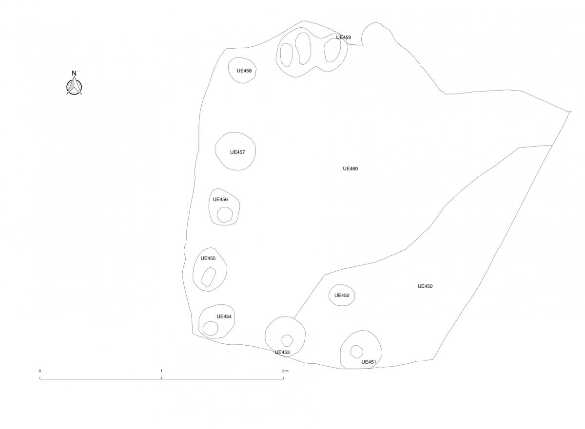 Tramo conservado de la fosa (UE450) de la tumba T8 visto desde el NE