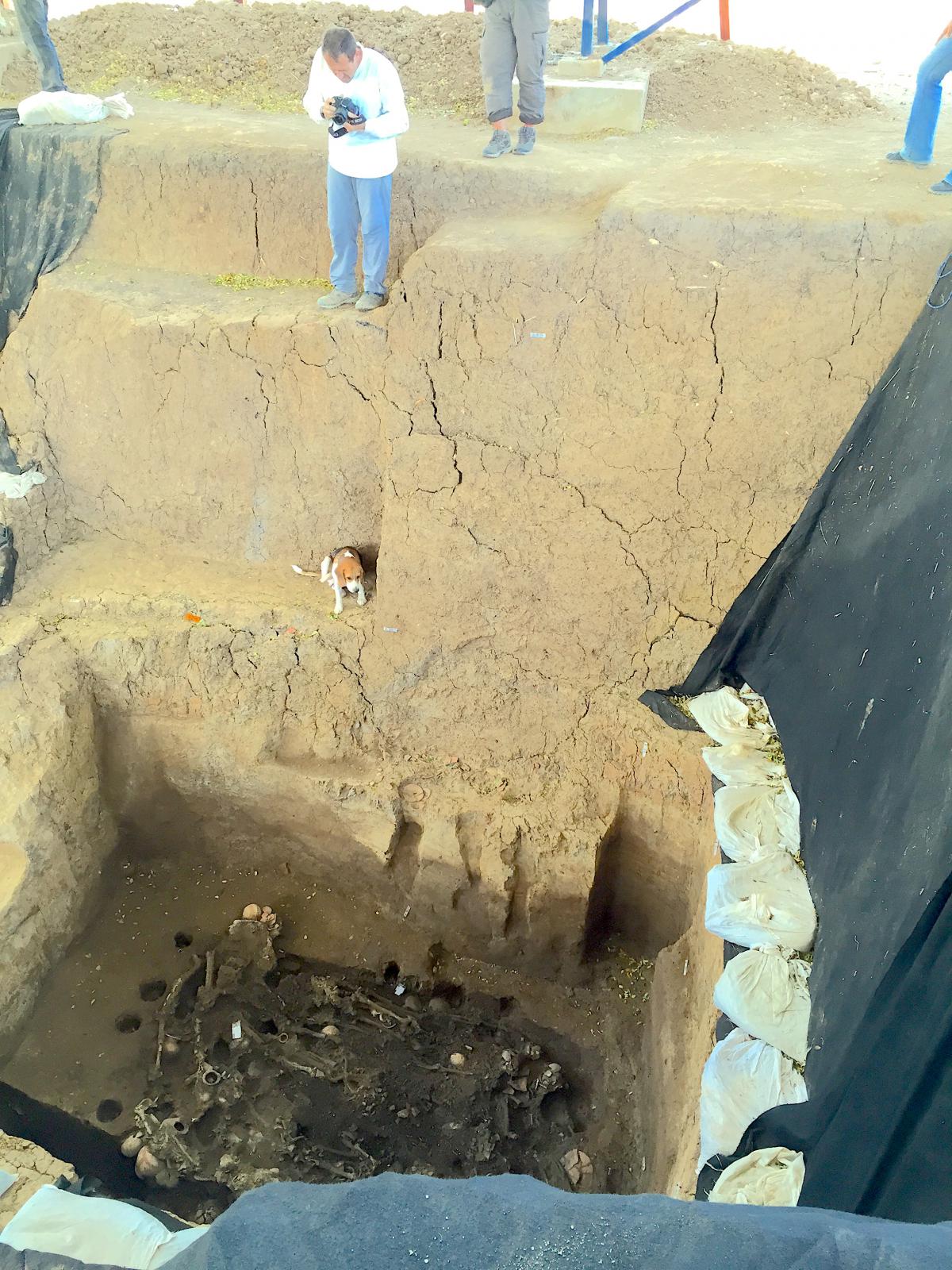 381 - T6-UE125 (a , (llamado en el año 2013, unidad UE167).Entierro de la tumba T6. Depósito de huesos humanos en posición primaria localizado a 3,48 m de profundidad. Es un entierro múltiple...