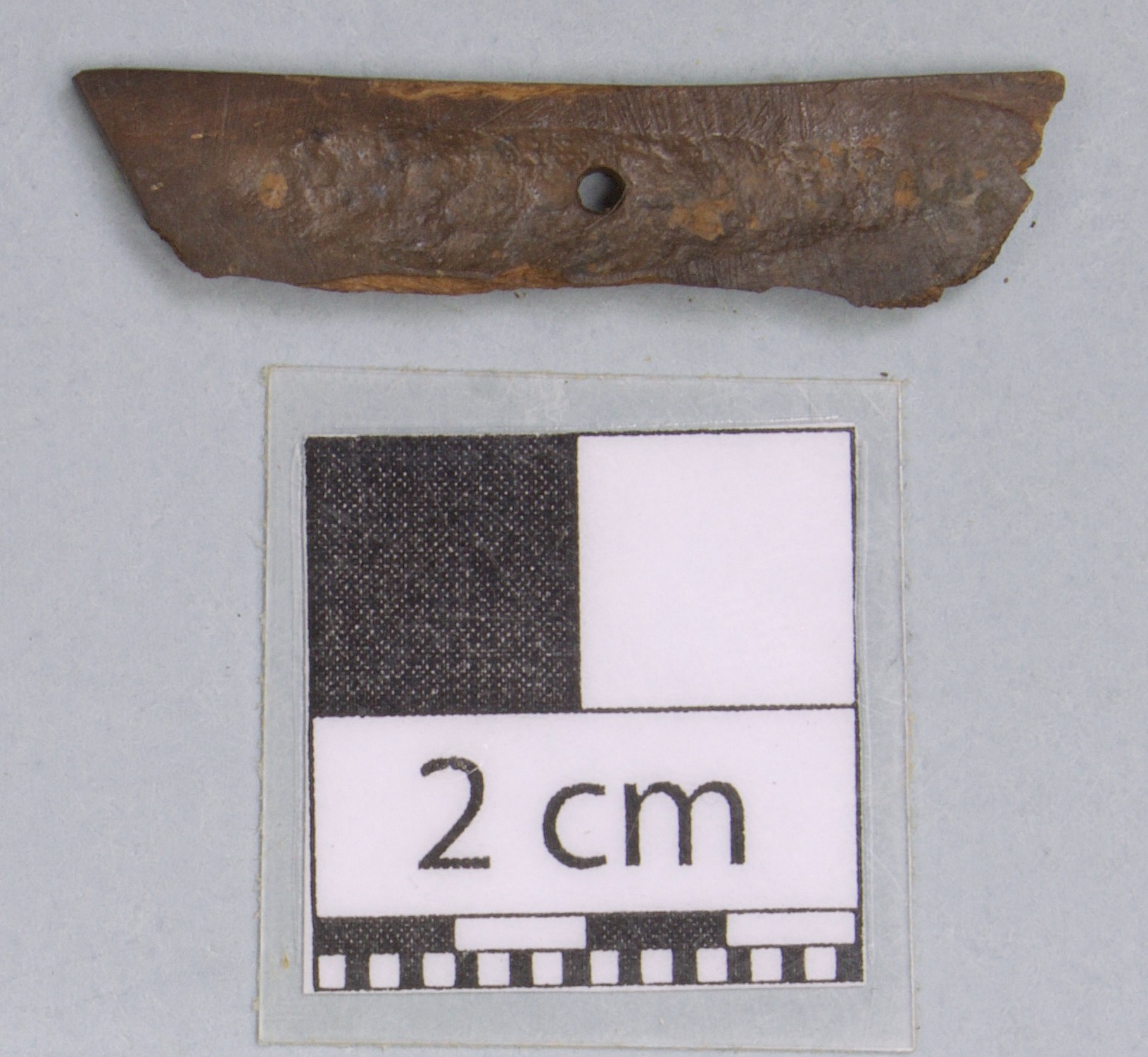 3592 - Canino de perro perforado. Aunque se encuentra fragmentado, se conservan sus partes.