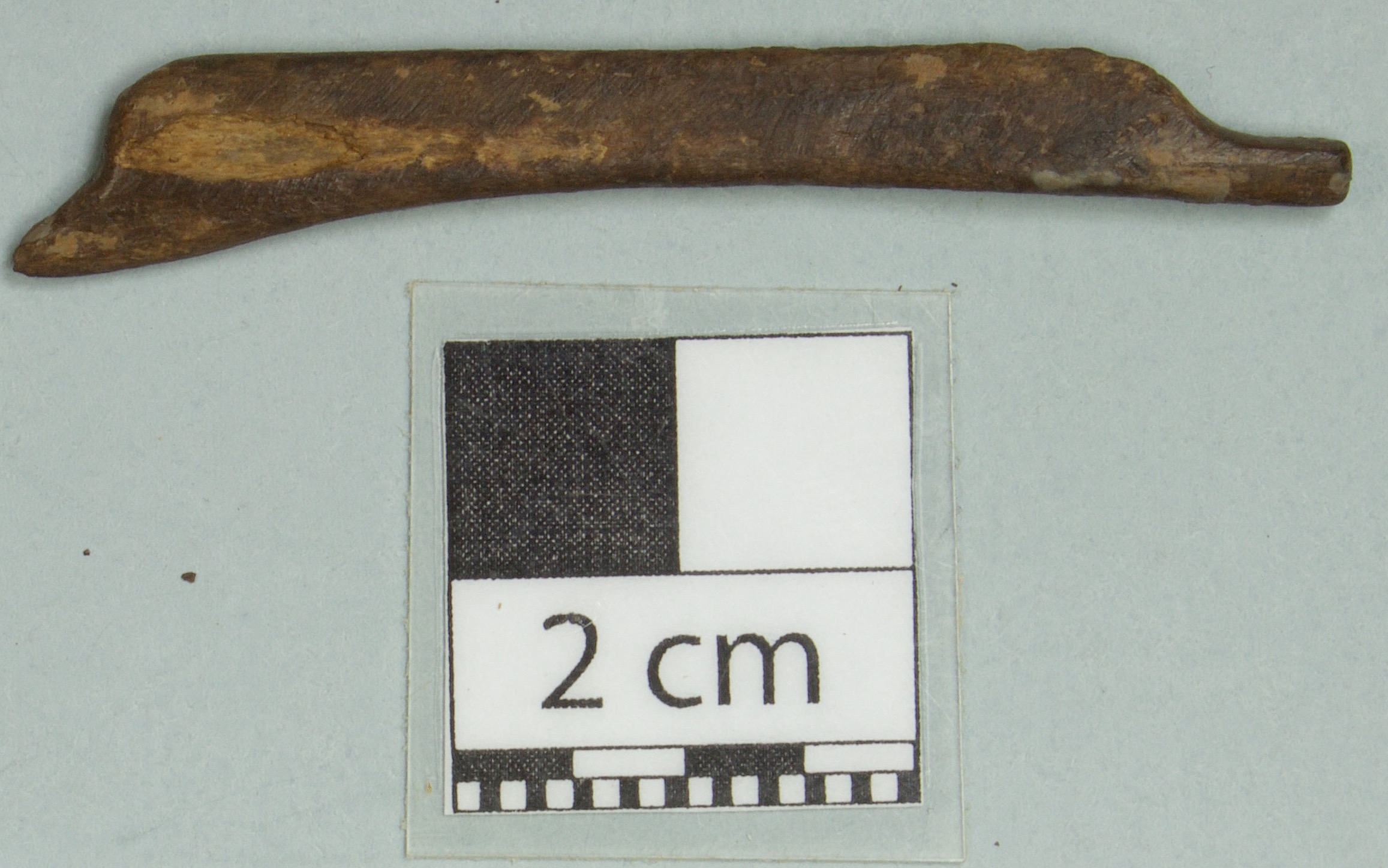 3606 - Hueso metapodiano trabajado de felino, parcialmente restaurado.