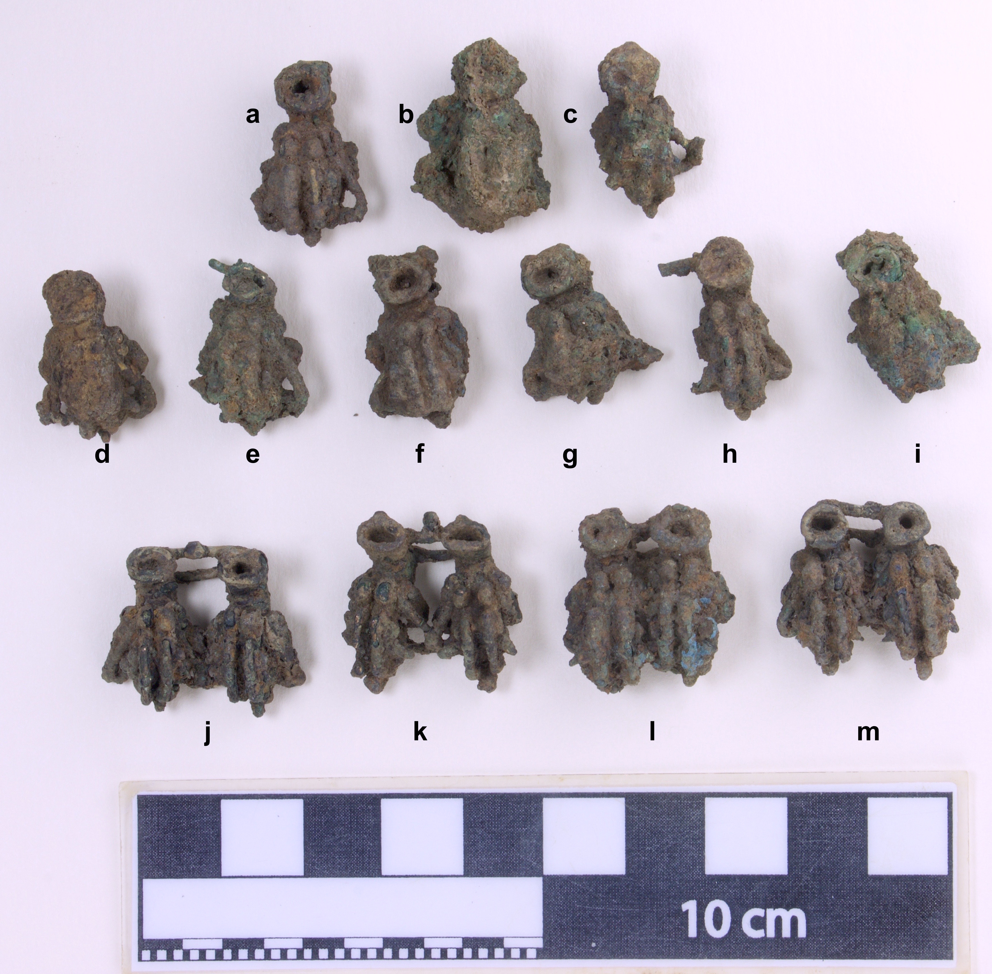 3653 - Efigie híbrida antropo-zoomorfa (humano-cangrejo) polícroma, sin base anular.
