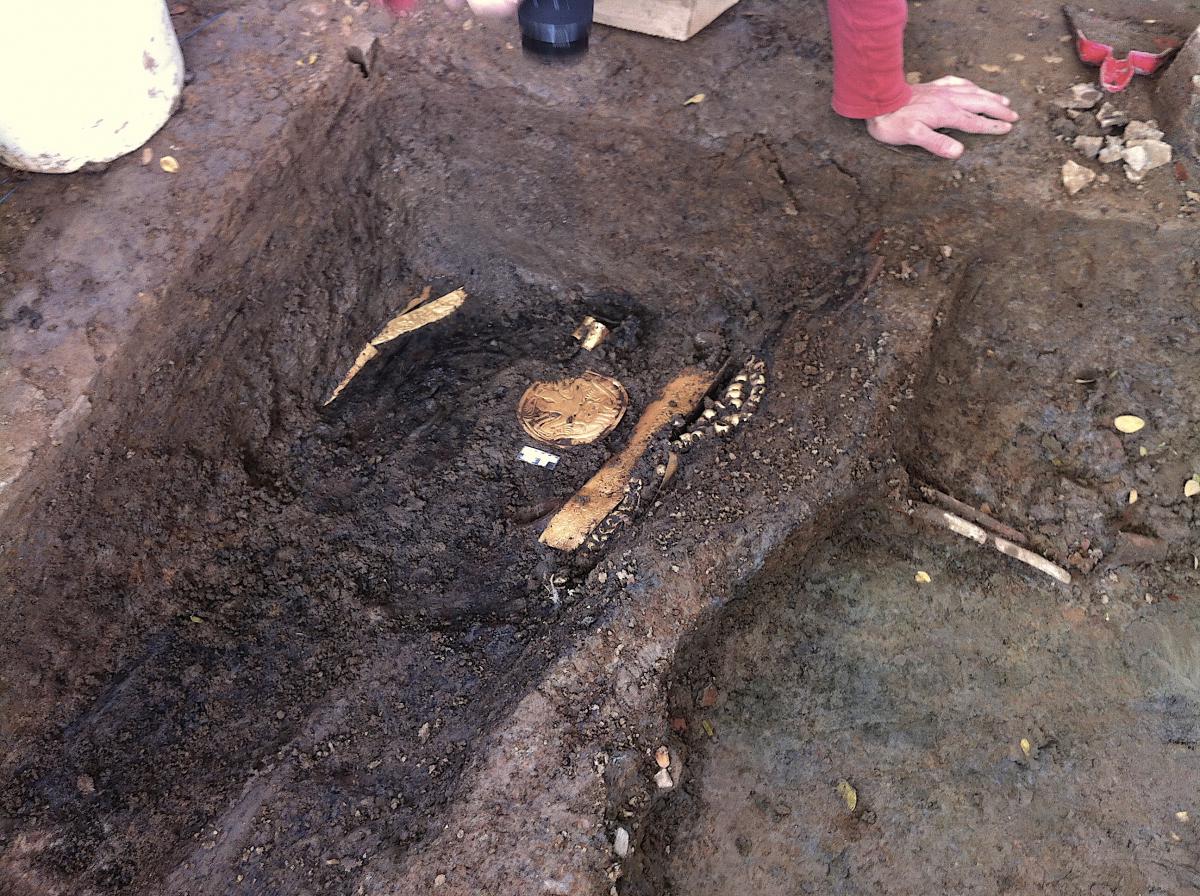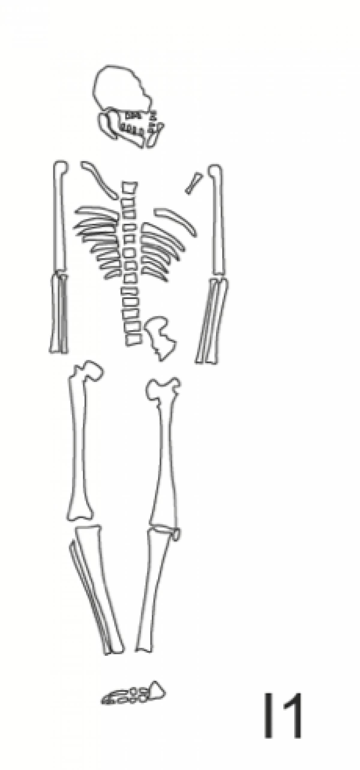 381 - T6-UE125 (a , (llamado en el año 2013, unidad UE167).Entierro de la tumba T6. Depósito de huesos humanos en posición primaria localizado a 3,48 m de profundidad. Es un entierro múltiple...
