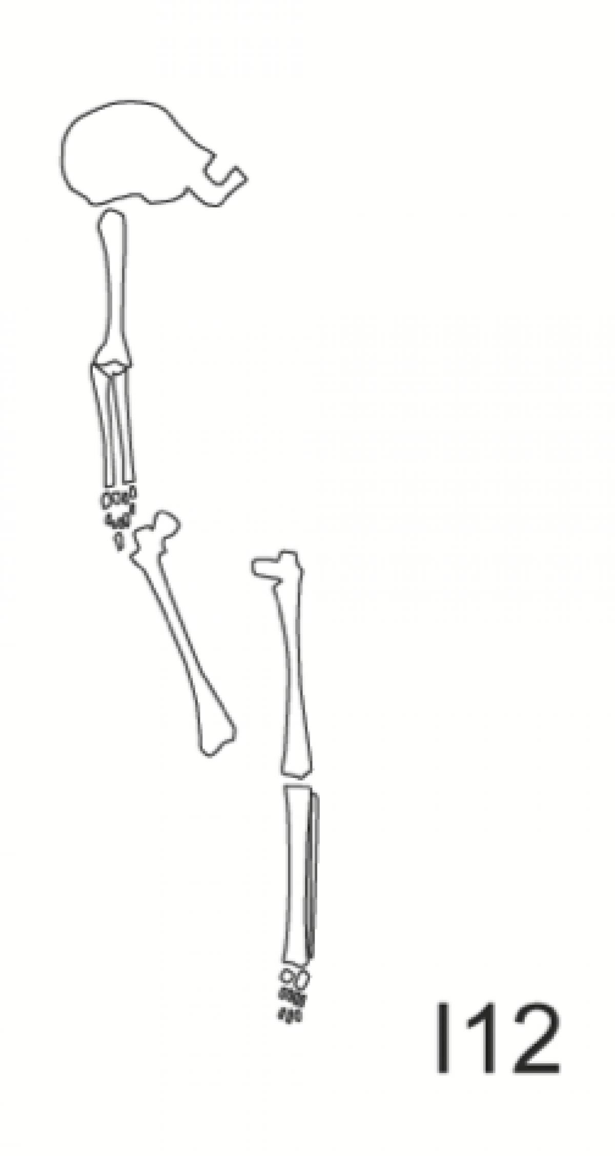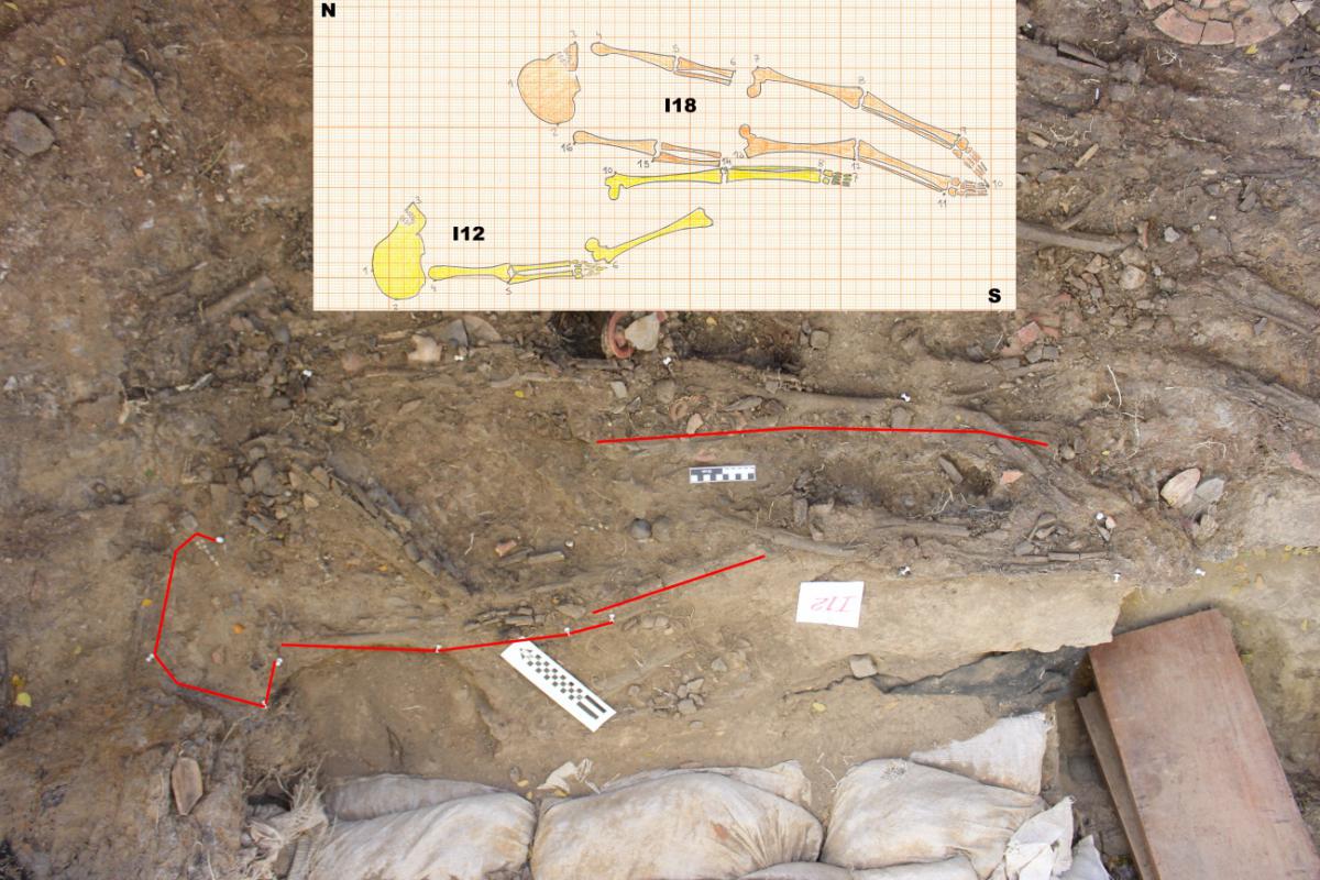 381 - T6-UE125 (a , (llamado en el año 2013, unidad UE167).Entierro de la tumba T6. Depósito de huesos humanos en posición primaria localizado a 3,48 m de profundidad. Es un entierro múltiple...