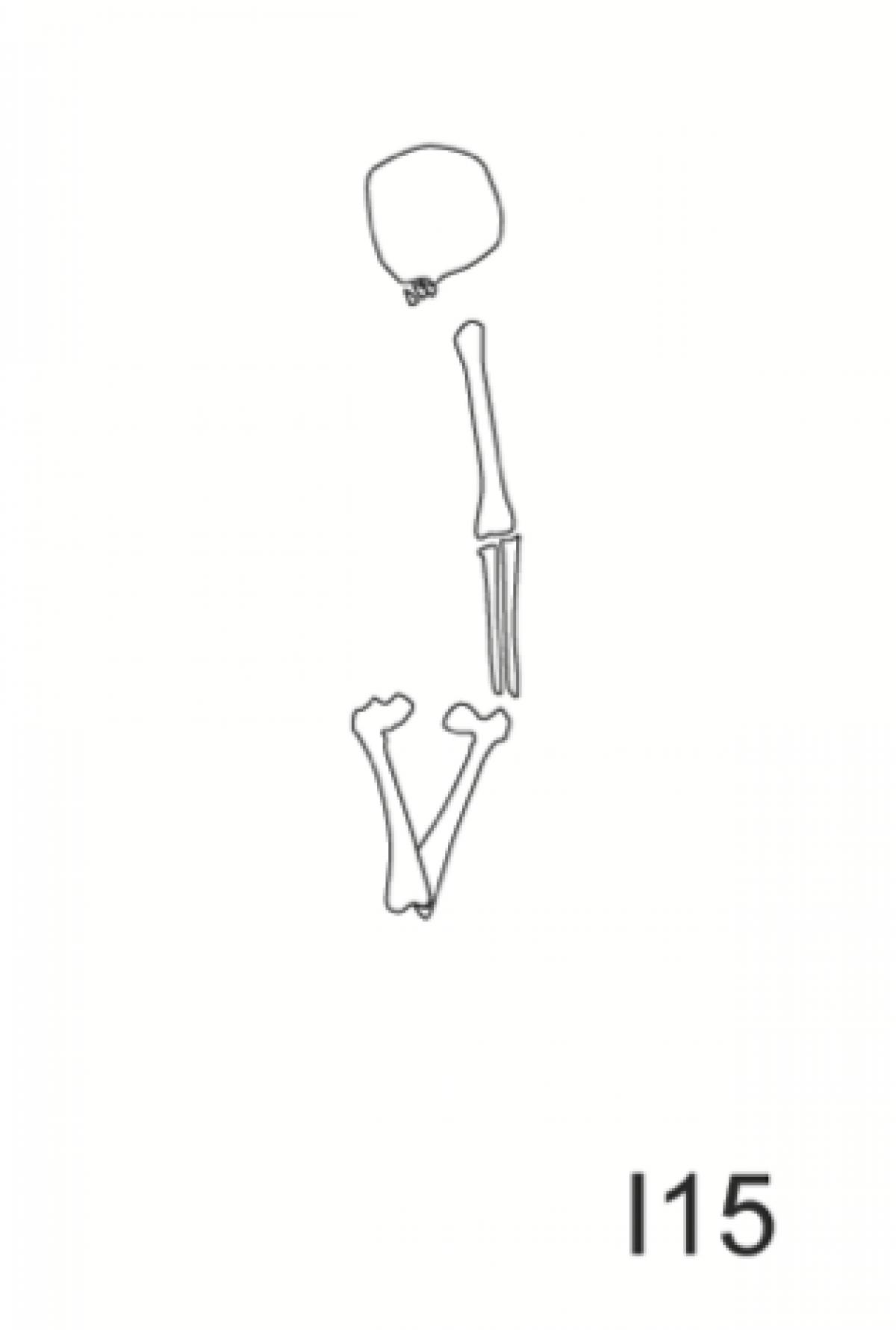 381 - T6-UE125 (a , (llamado en el año 2013, unidad UE167).Entierro de la tumba T6. Depósito de huesos humanos en posición primaria localizado a 3,48 m de profundidad. Es un entierro múltiple...