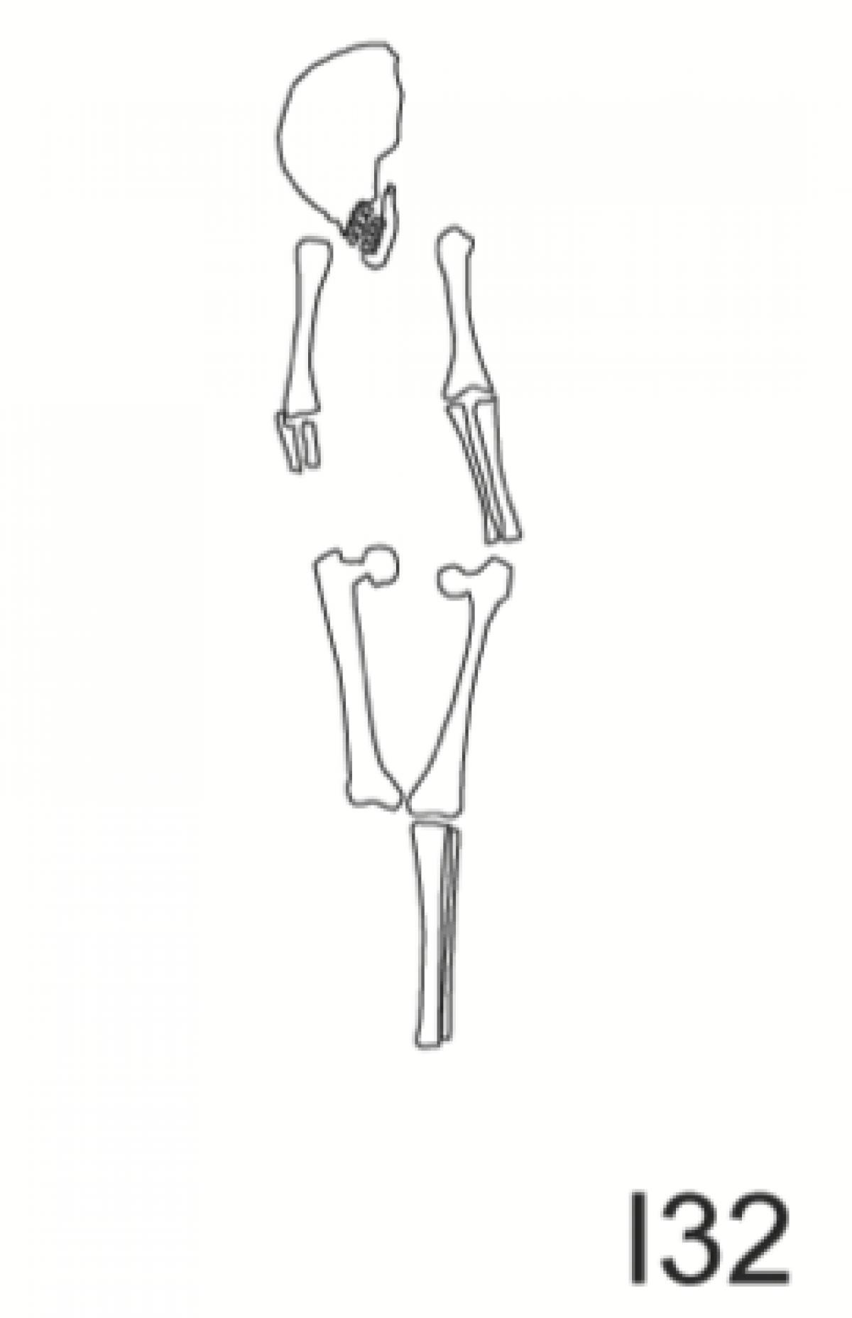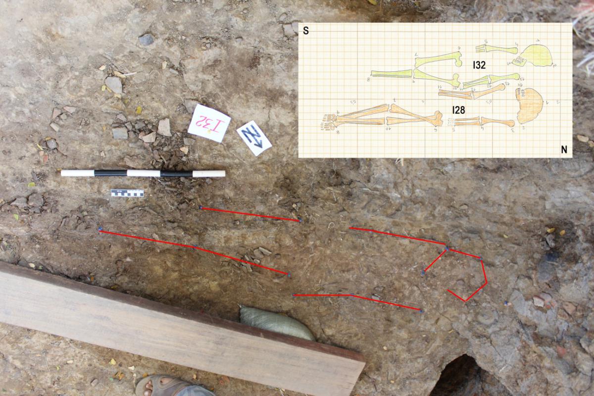 381 - T6-UE125 (a , (llamado en el año 2013, unidad UE167).Entierro de la tumba T6. Depósito de huesos humanos en posición primaria localizado a 3,48 m de profundidad. Es un entierro múltiple...