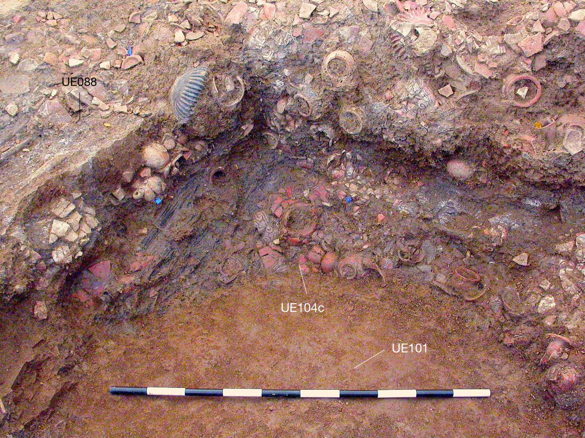 Detalle de la unidad UE104 a medida que avanza la excavación y se va descubriendo la unidad.