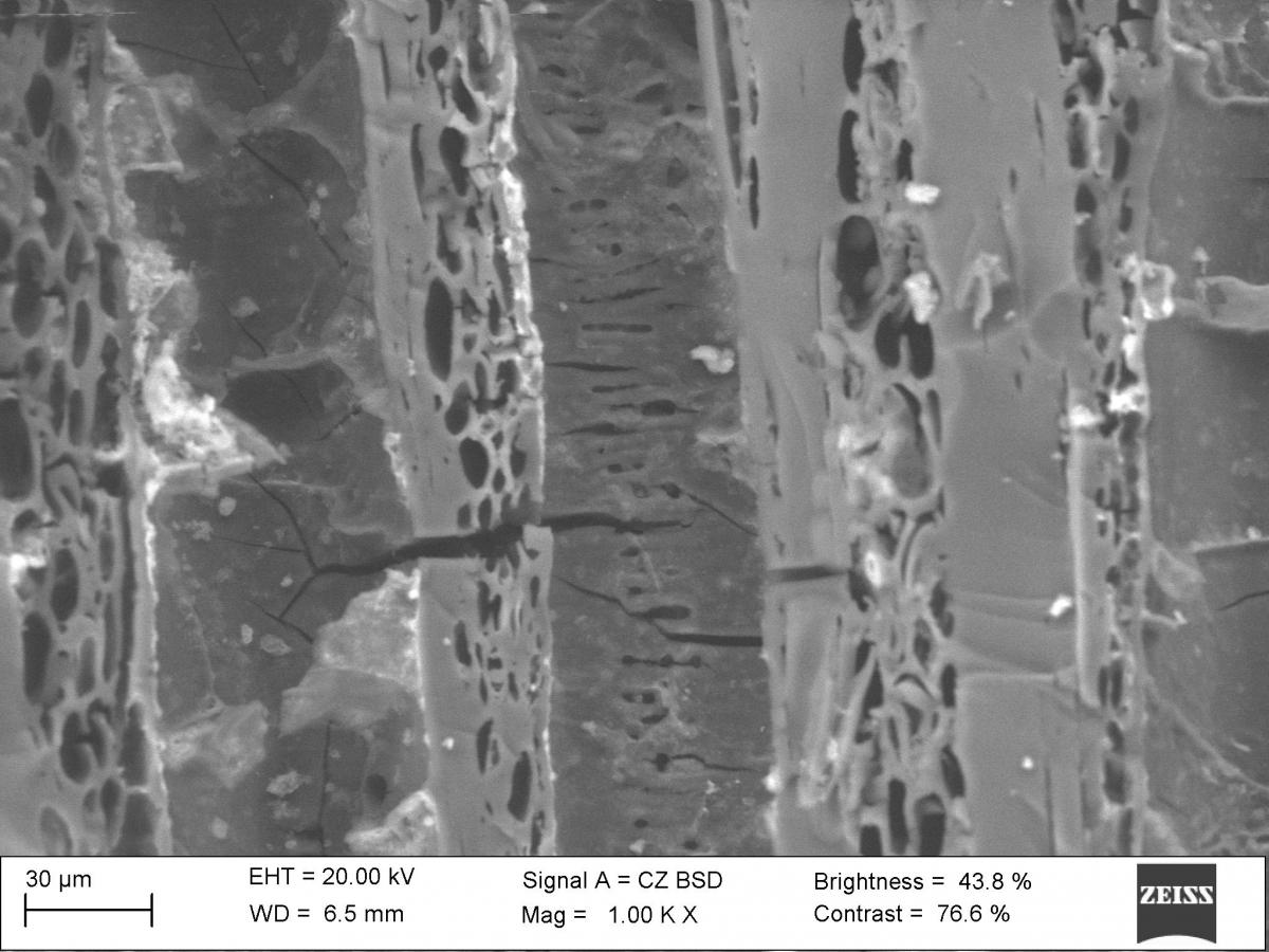 Imagen del plano transversal de Rhizophora sp. tomada en el MEB
